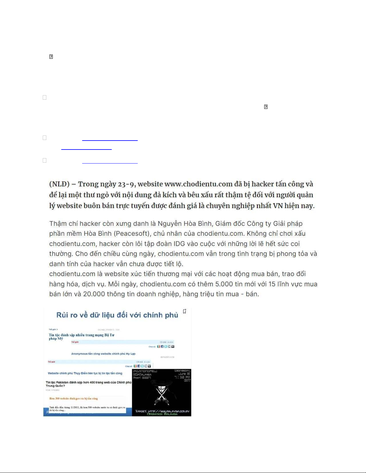 Website. Qua đó làm giảm doanh số hoạt động của website, giảm uy 琀椀 n và 琀椀 ếng tăm của doanh nghiệp lOMoAR cPSD| 58794847 Ví dụ: -