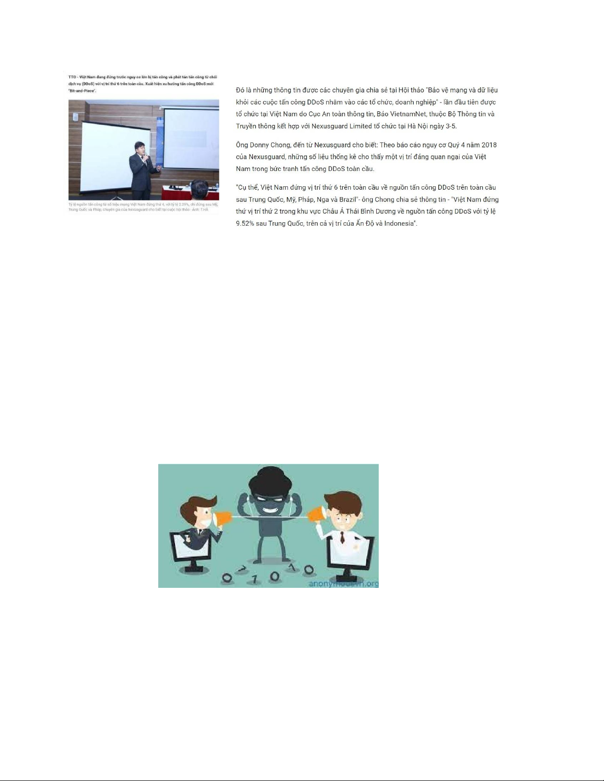 báo mạng như: Dân trí, Kênh 14, Soha v.v.v ( chưa tìm ra thủ phạm ), và vụ thứ 2 là DDos vào diễn đàn công nghệ thông