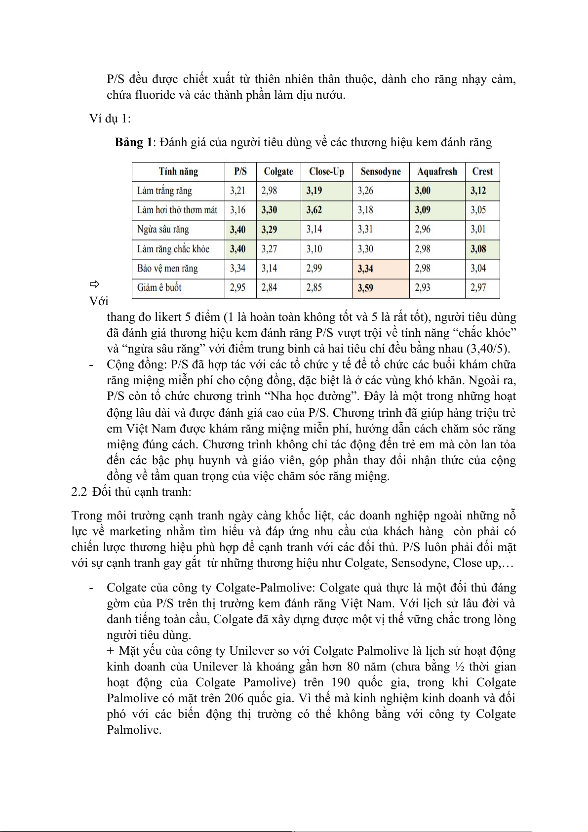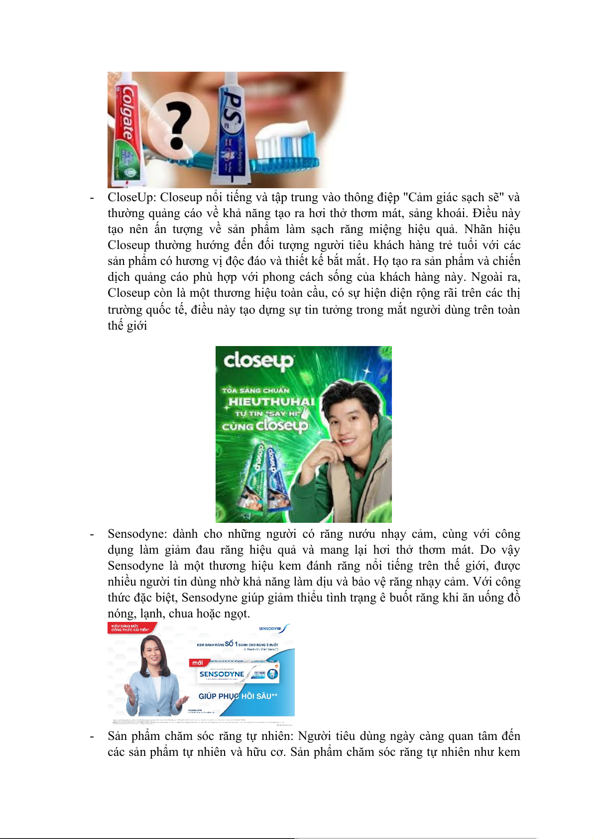 đồng về tầm quan trọng của việc chăm sóc răng miệng. 2.2 Đối thủ cạnh tranh: