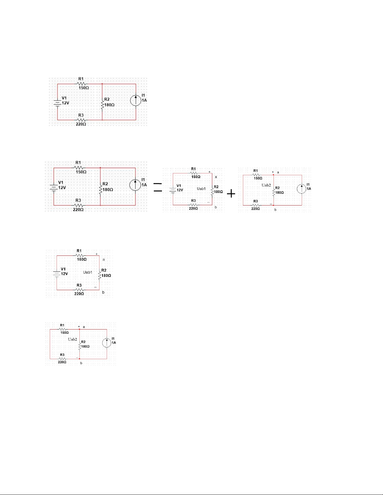 Áp dung đinh lý xếp chồng, ta tách mạch điện thành 2 hình (hình 2.3 và hình 2.4): (hình 2.2) (hình 2.3) (hình 2.4)