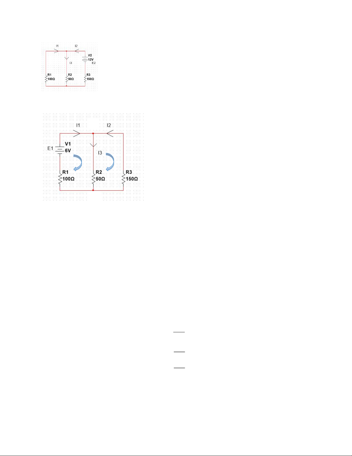 I1+ I2−I3=0 100 I1+50I3=0 {150I2+50I3=12 I = −6 A 1 275 18 I2= 275 A { 12IA3=275