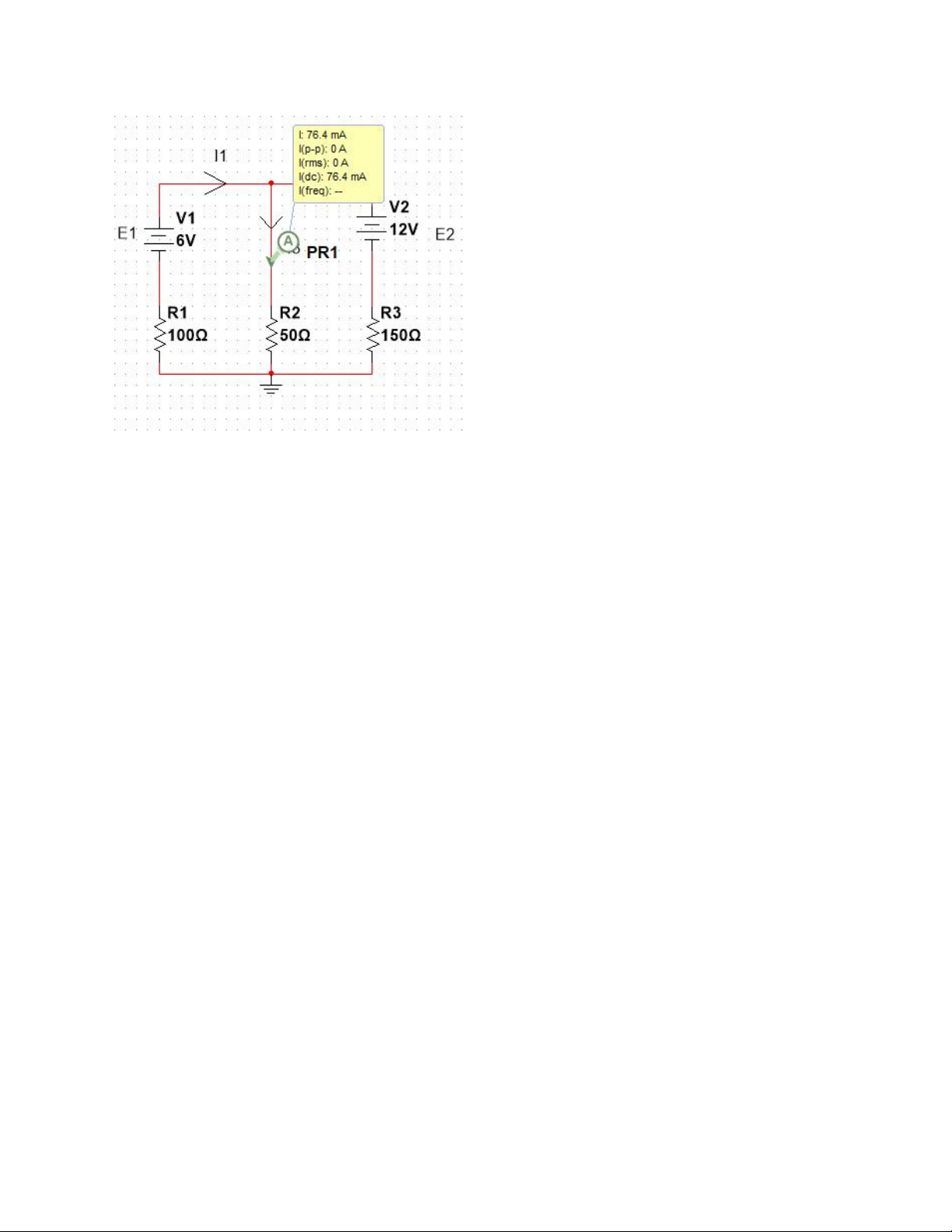 K2 = -E + R1I1 + R2I1 +R3I1 = 0 => I = 12 = 6 ≈ 0,022 A 1 150+180+220 275