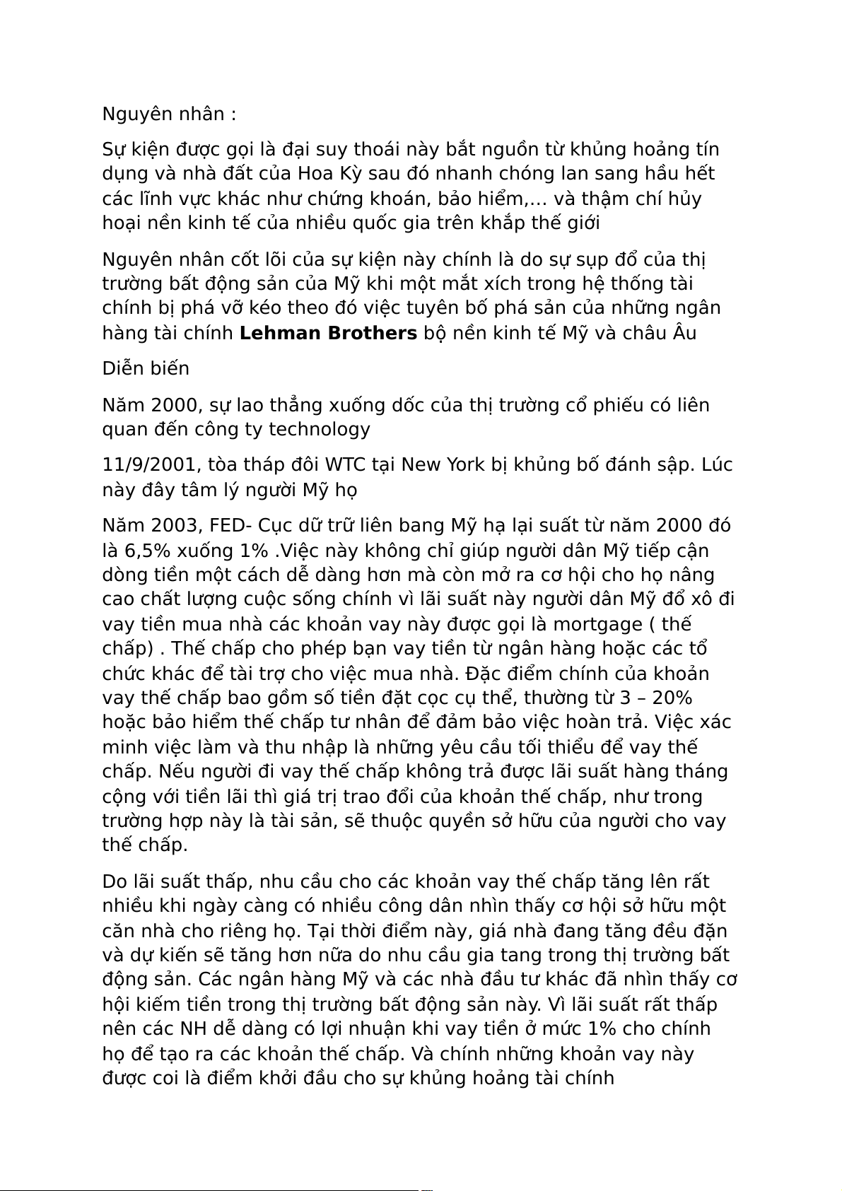 hàng tài chính Lehman Brothers bộ nền kinh tế Mỹ và châu Âu Diễn biến