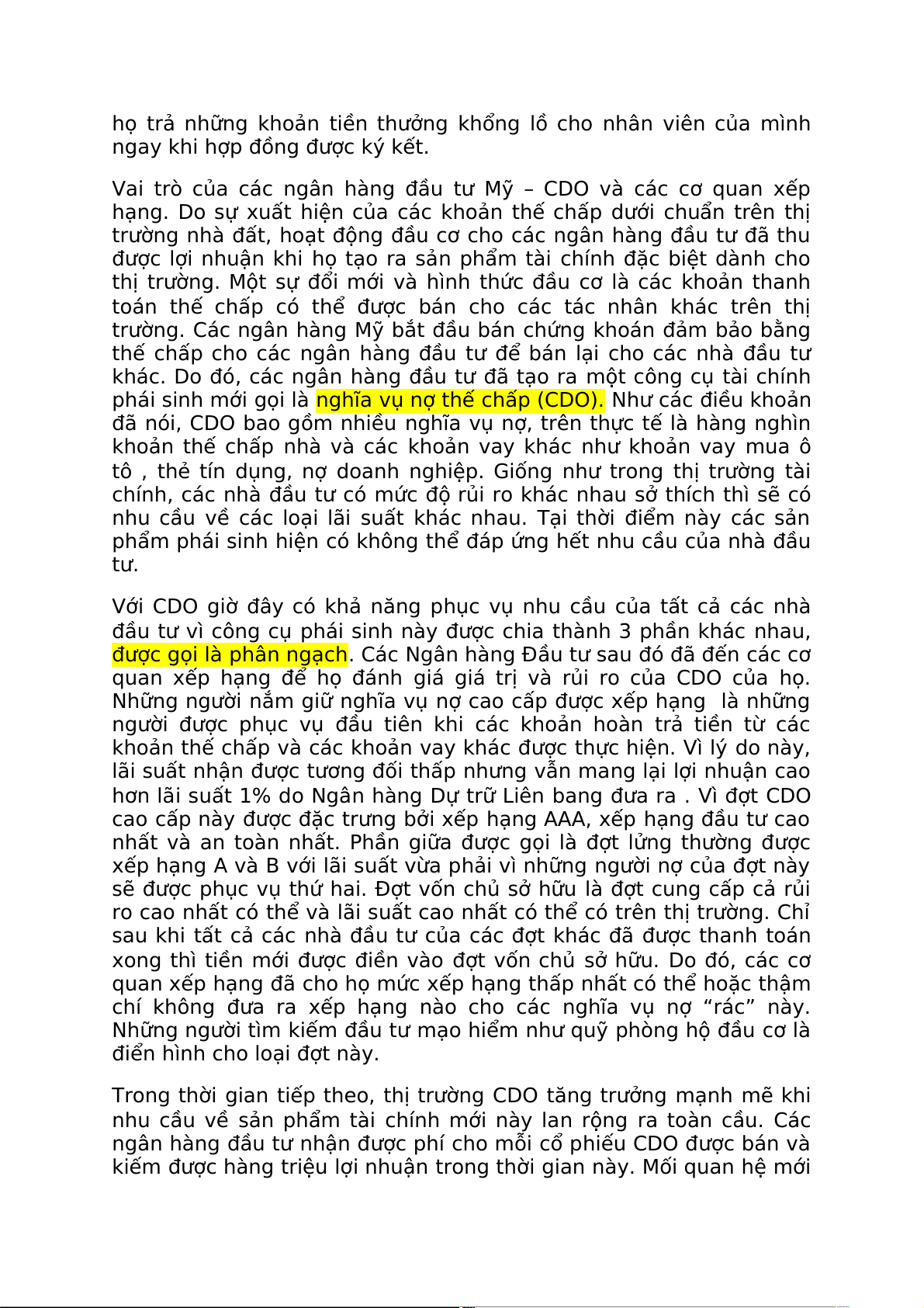 phái sinh mới gọi là nghĩa vụ nợ thế chấp (CDO). Như các điều khoản