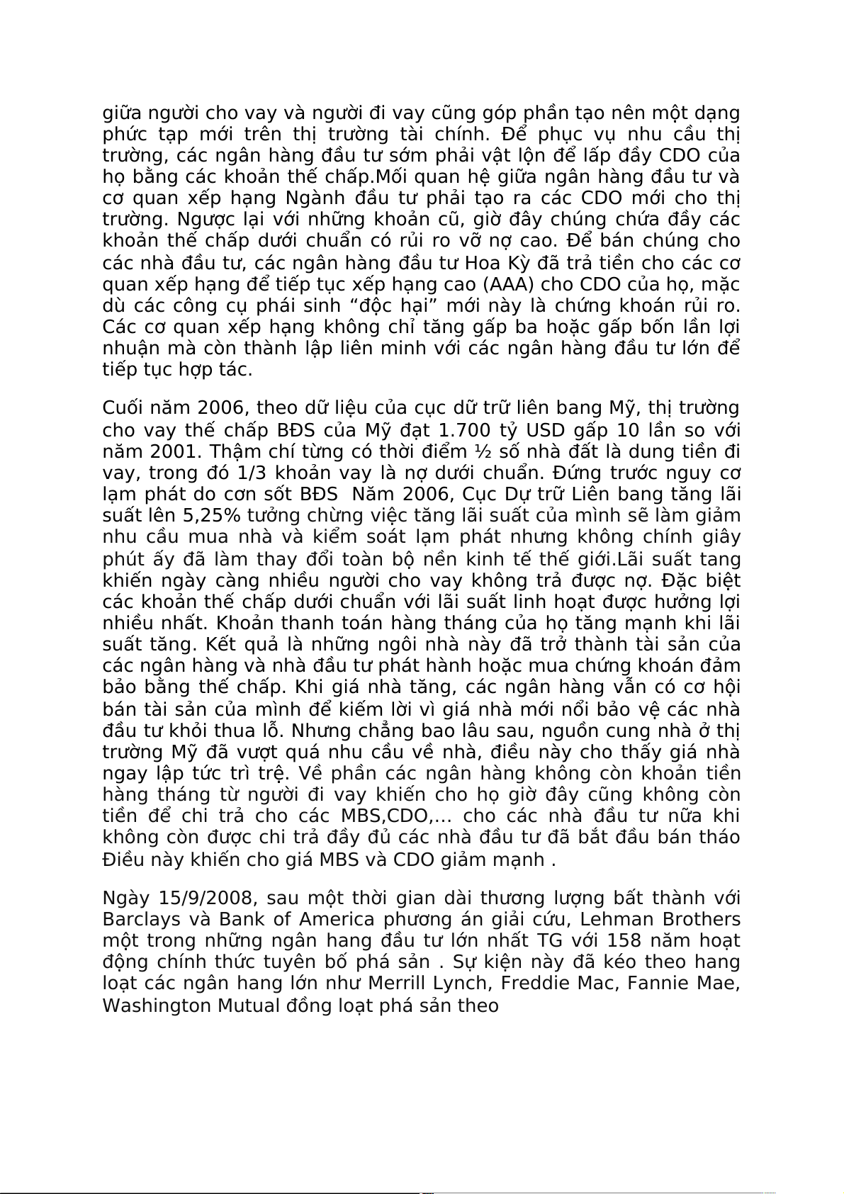 tiền để chi trả cho các MBS,CDO,… cho các nhà đầu tư nữa khi