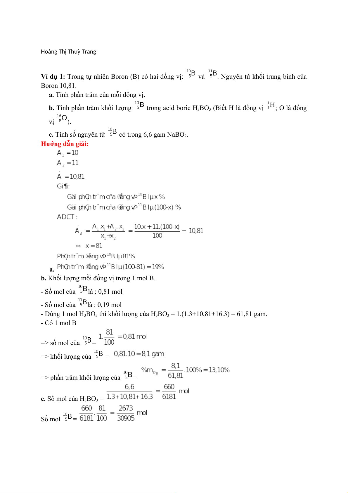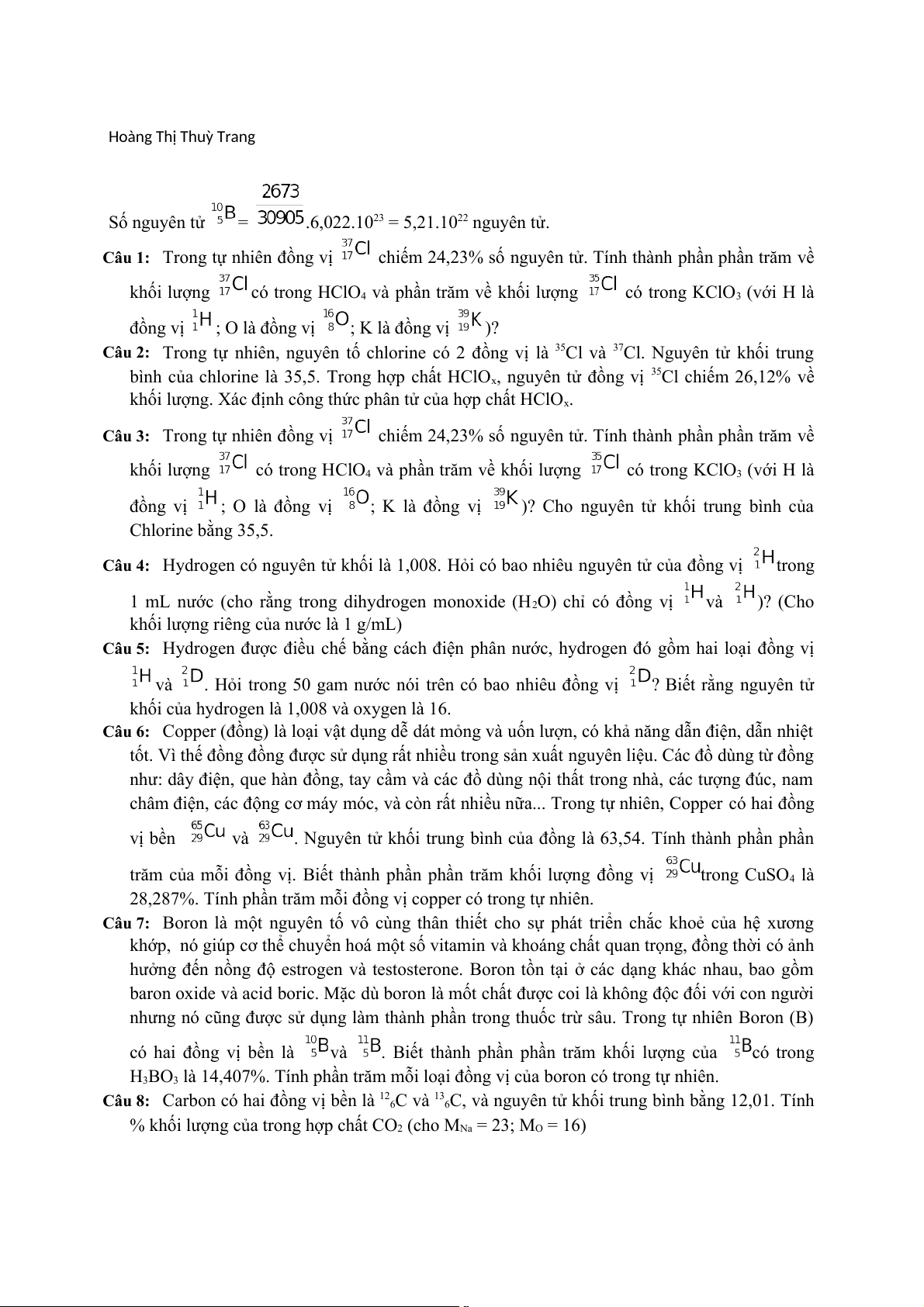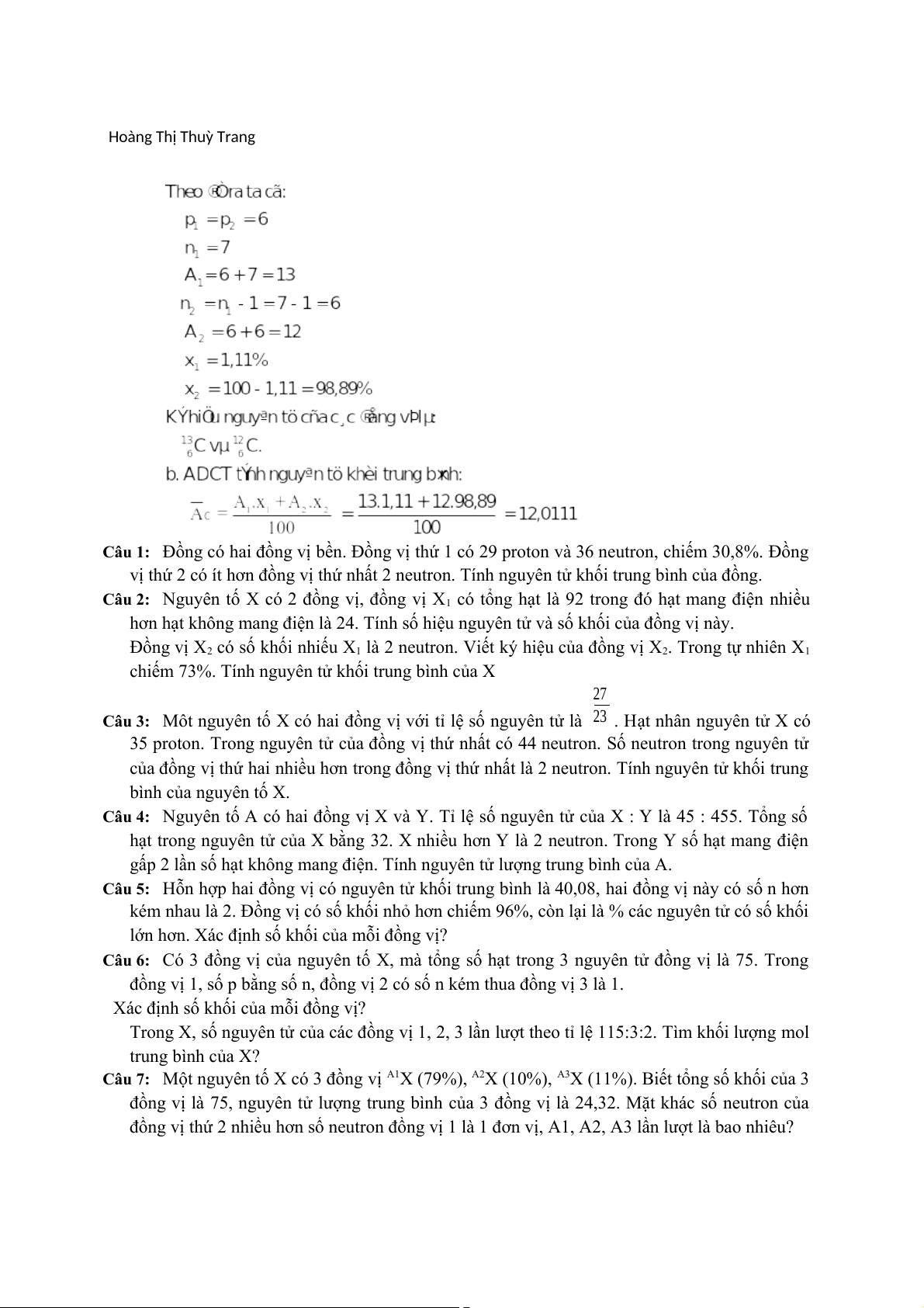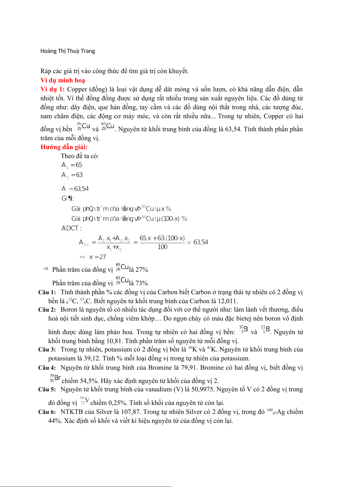 , … lần lượt là thành phần % của các đồng vị. 3 Hoàng Thị Thuỳ Trang