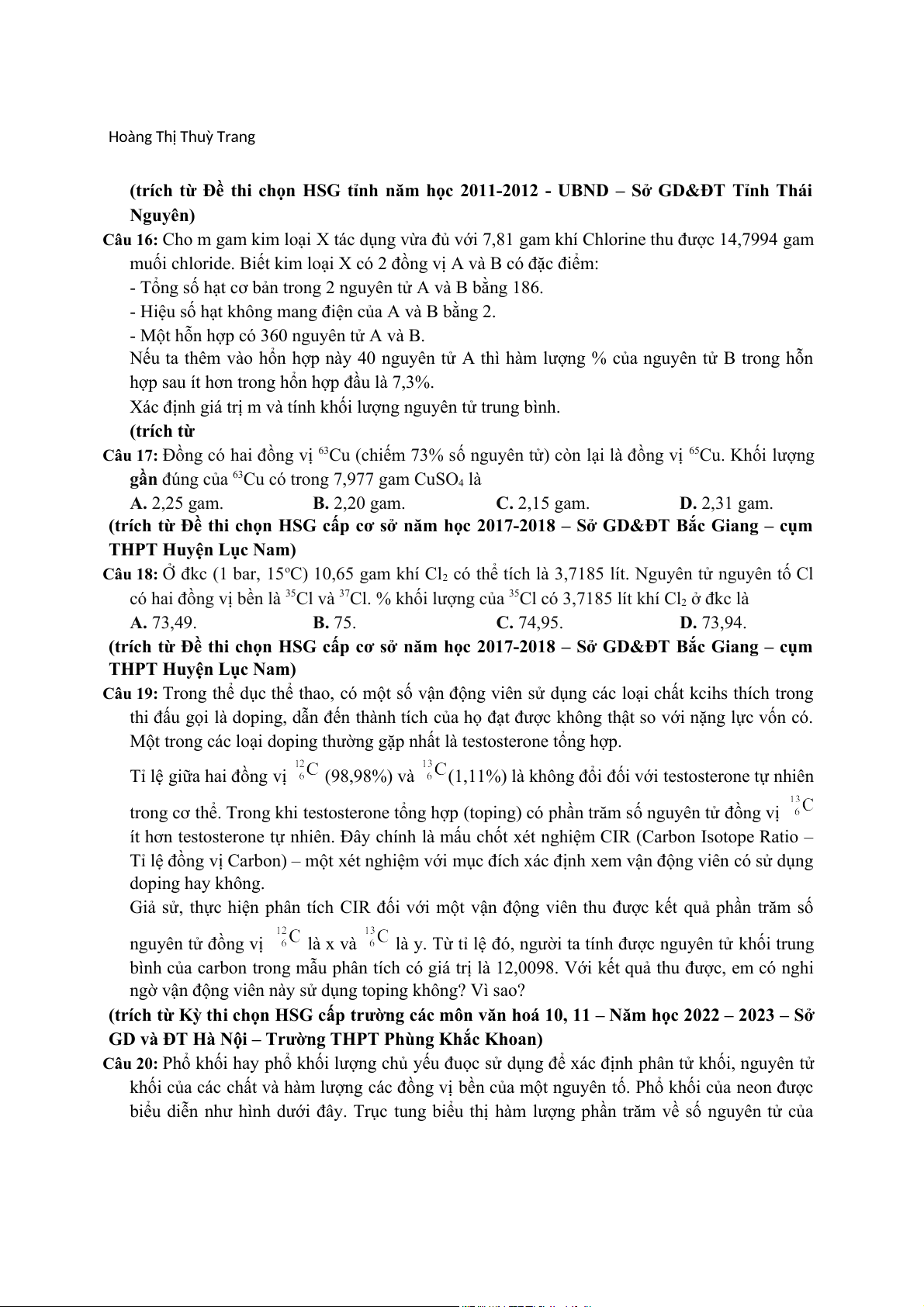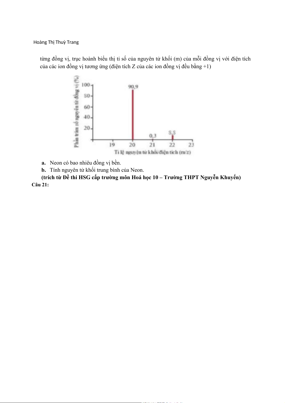 (trích từ Đề thi HSG cấp trường môn Hoá học 10 – Trường THPT Nguyễn Khuyến) Câu 21: