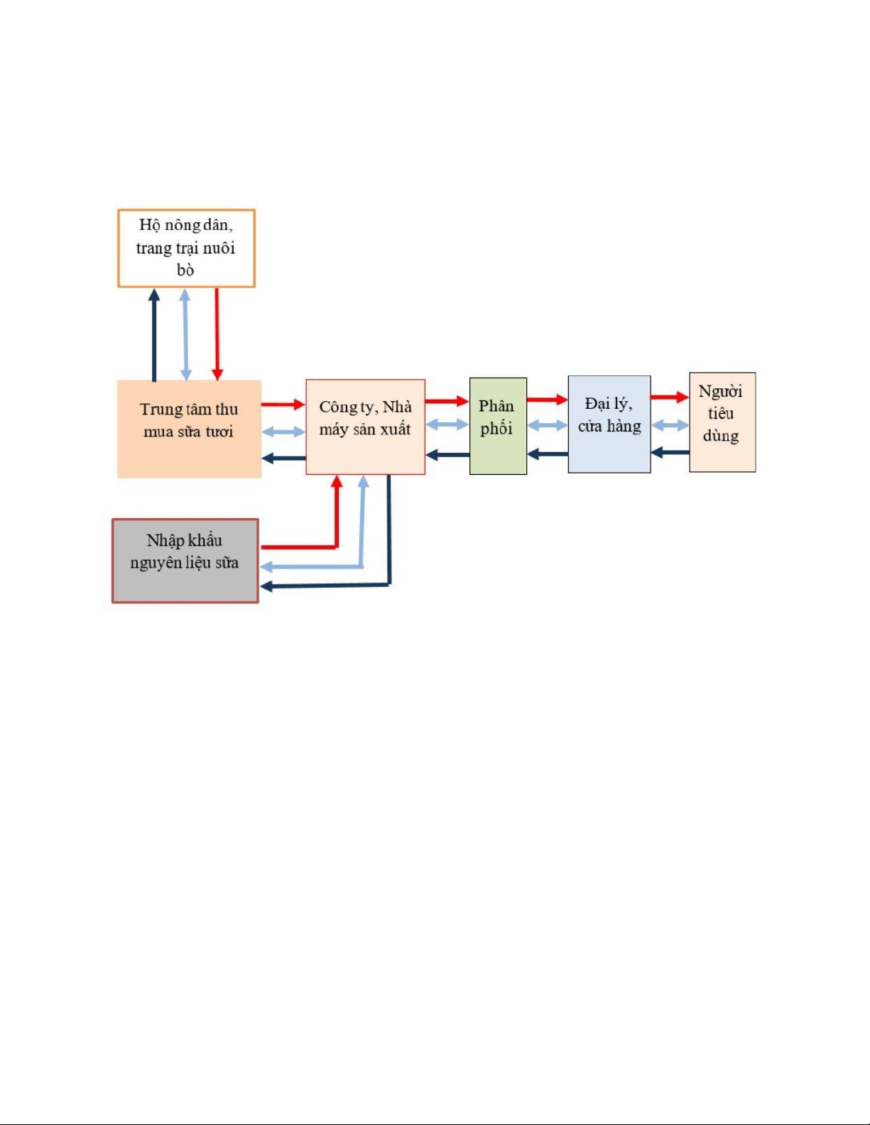 Mô hình chuỗi cung ứng của Vinamilk quản trị bao gồm 3 dòng:
