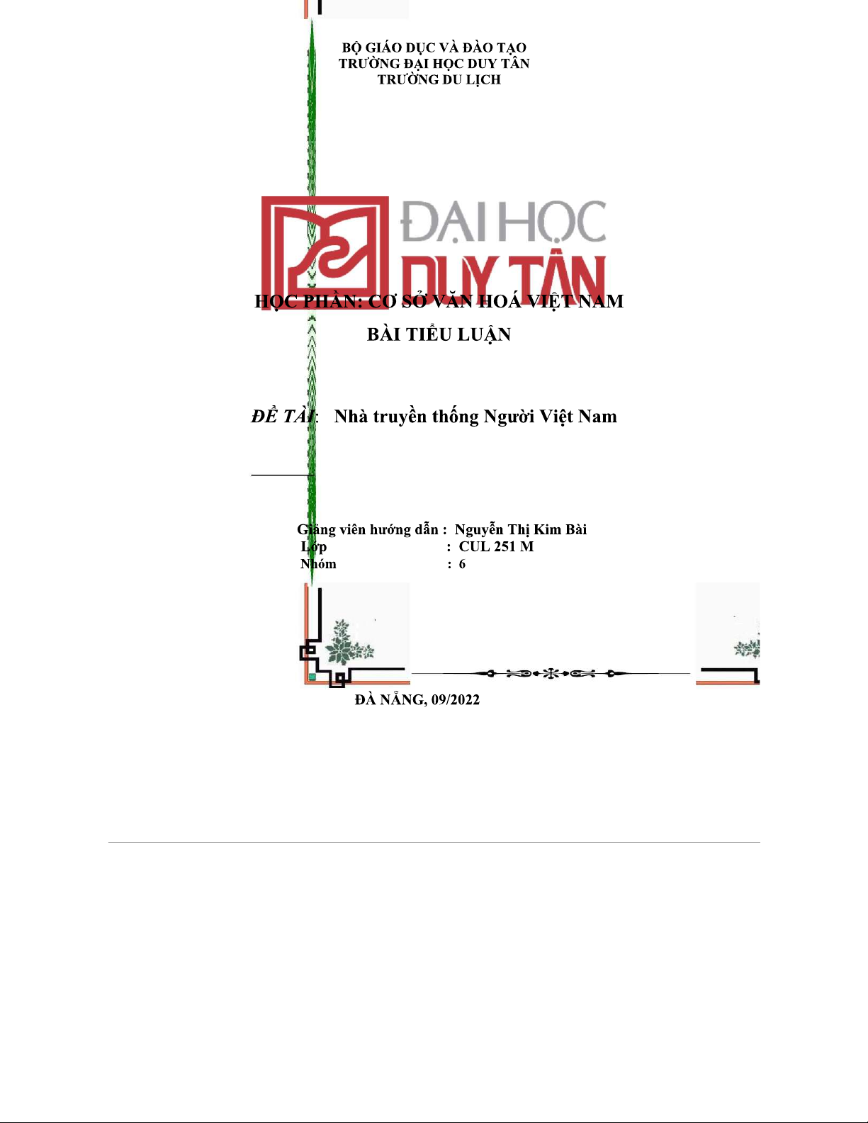 Nhà Truyền Thống Người Việt - Tiểu Luận Cơ Sở Văn Hóa VN - Nhóm 6
