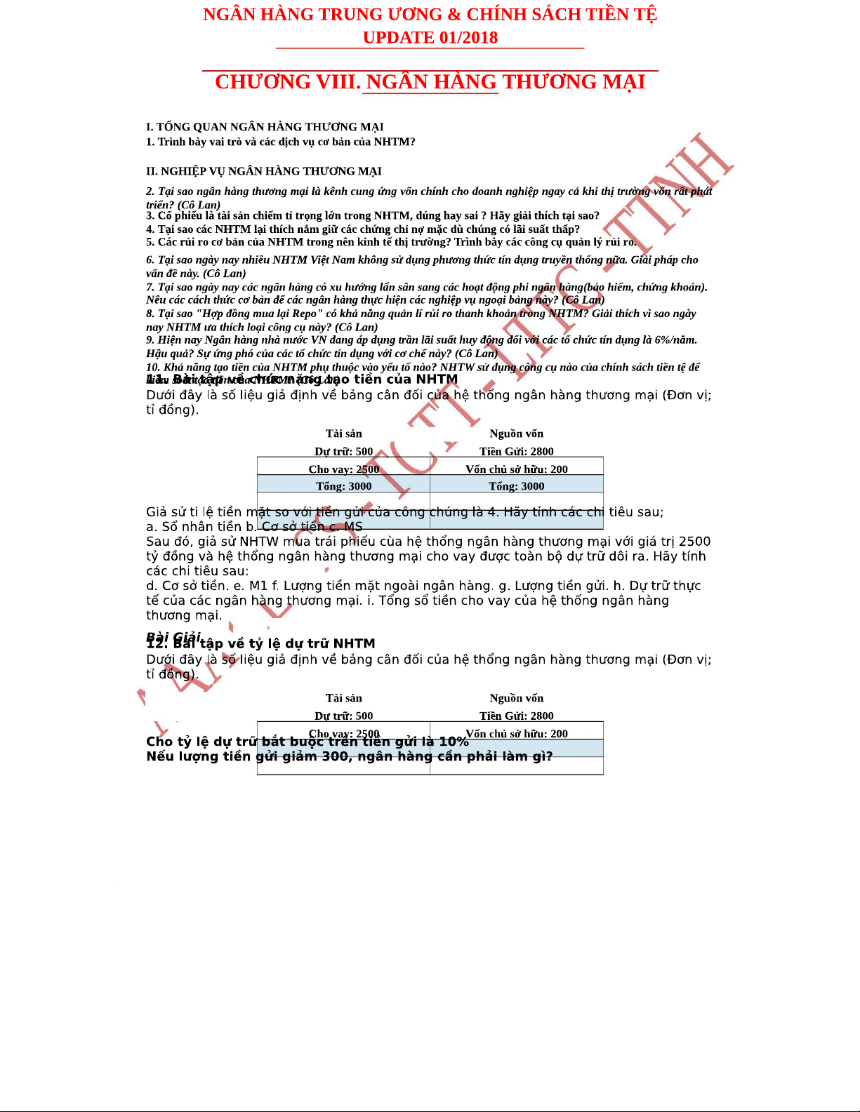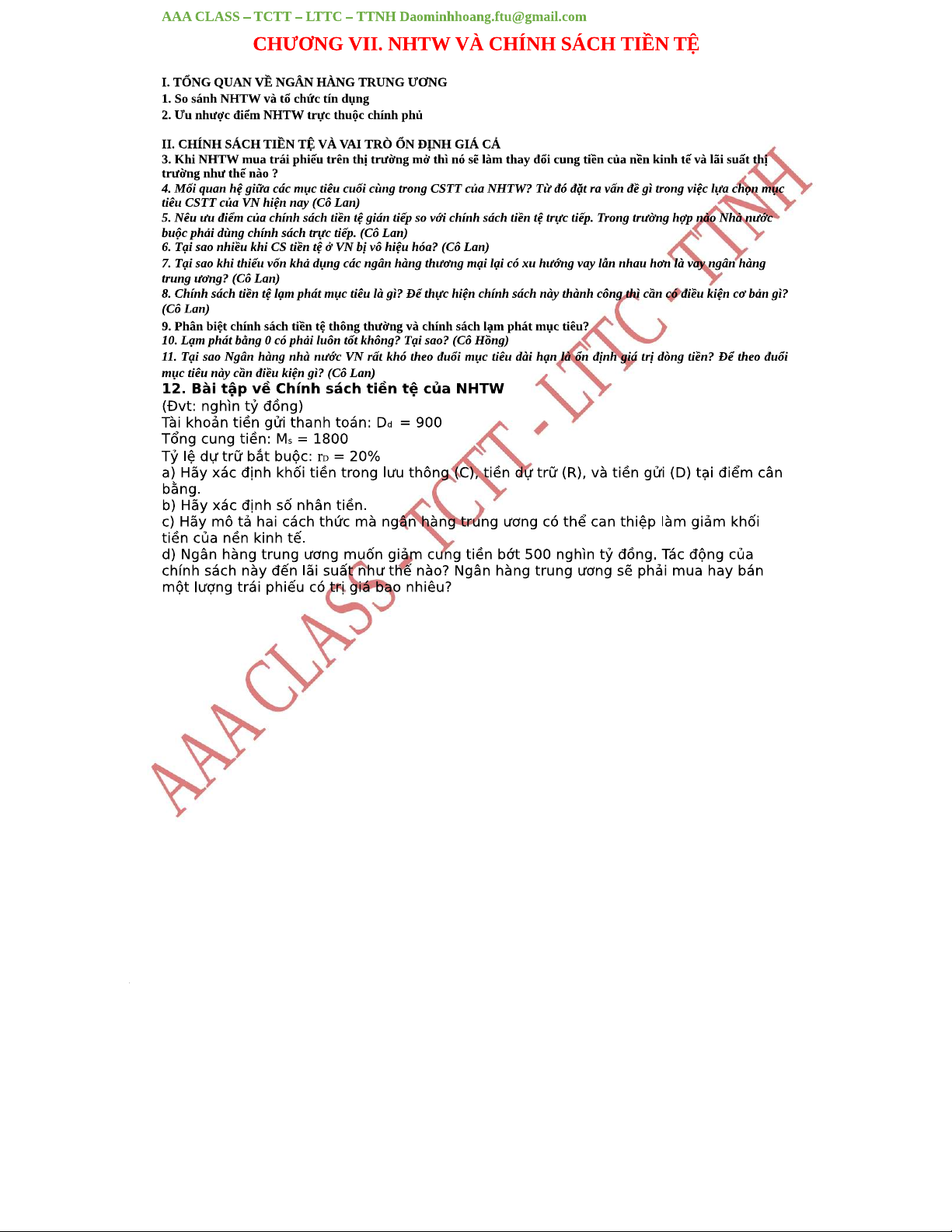Nhãn Bài Tập Chính Sách Tiền Tệ - TCTT cho Lớp AAA (Chương VII & VIII)