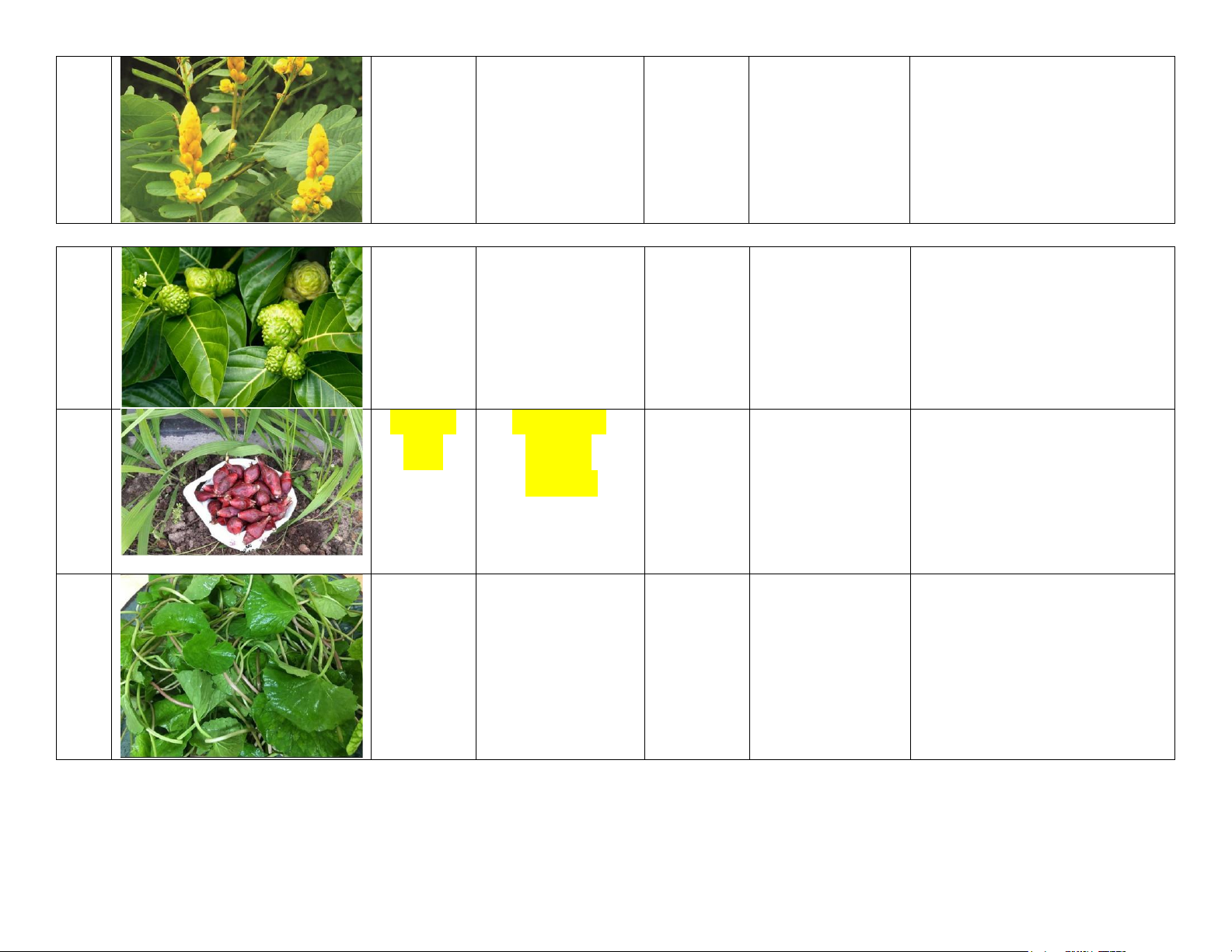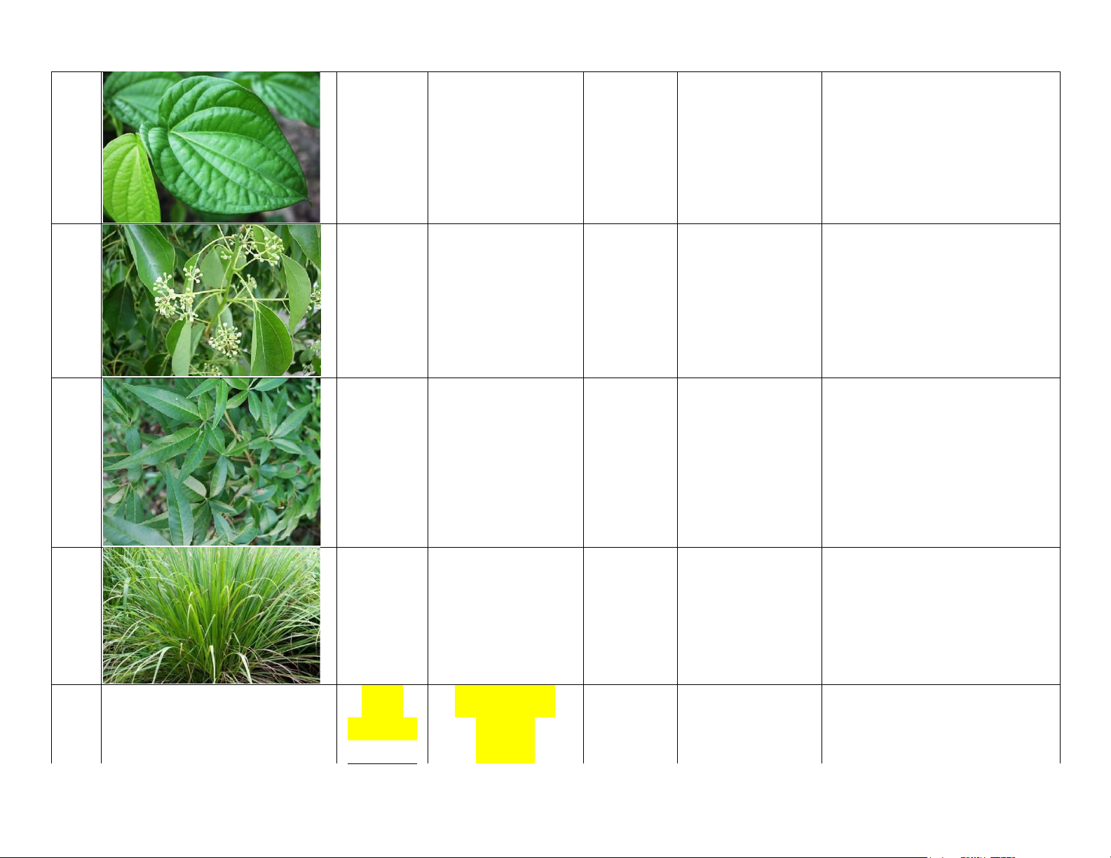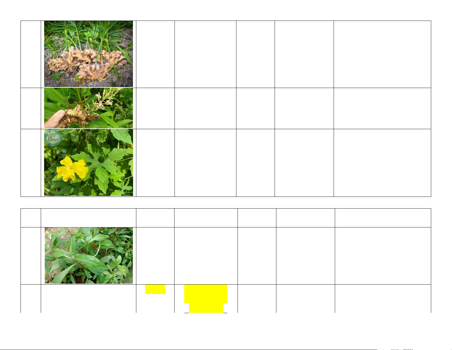 lOMoAR cPSD| 45469857 BUỔI 1 STT Ảnh Tên Việt Tên khoa học Bộ phận Thành phần Công dụng Nam 1 Bồ kết Gleditsia fera Quả, gai, Saponin,
