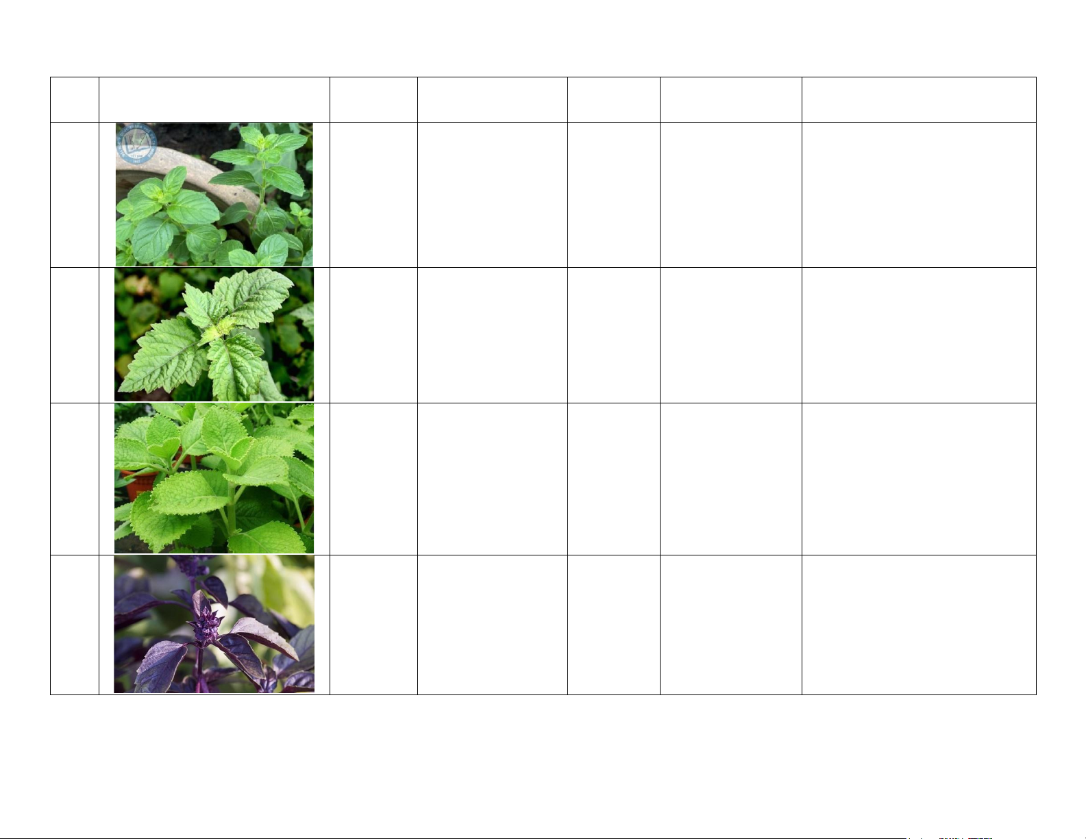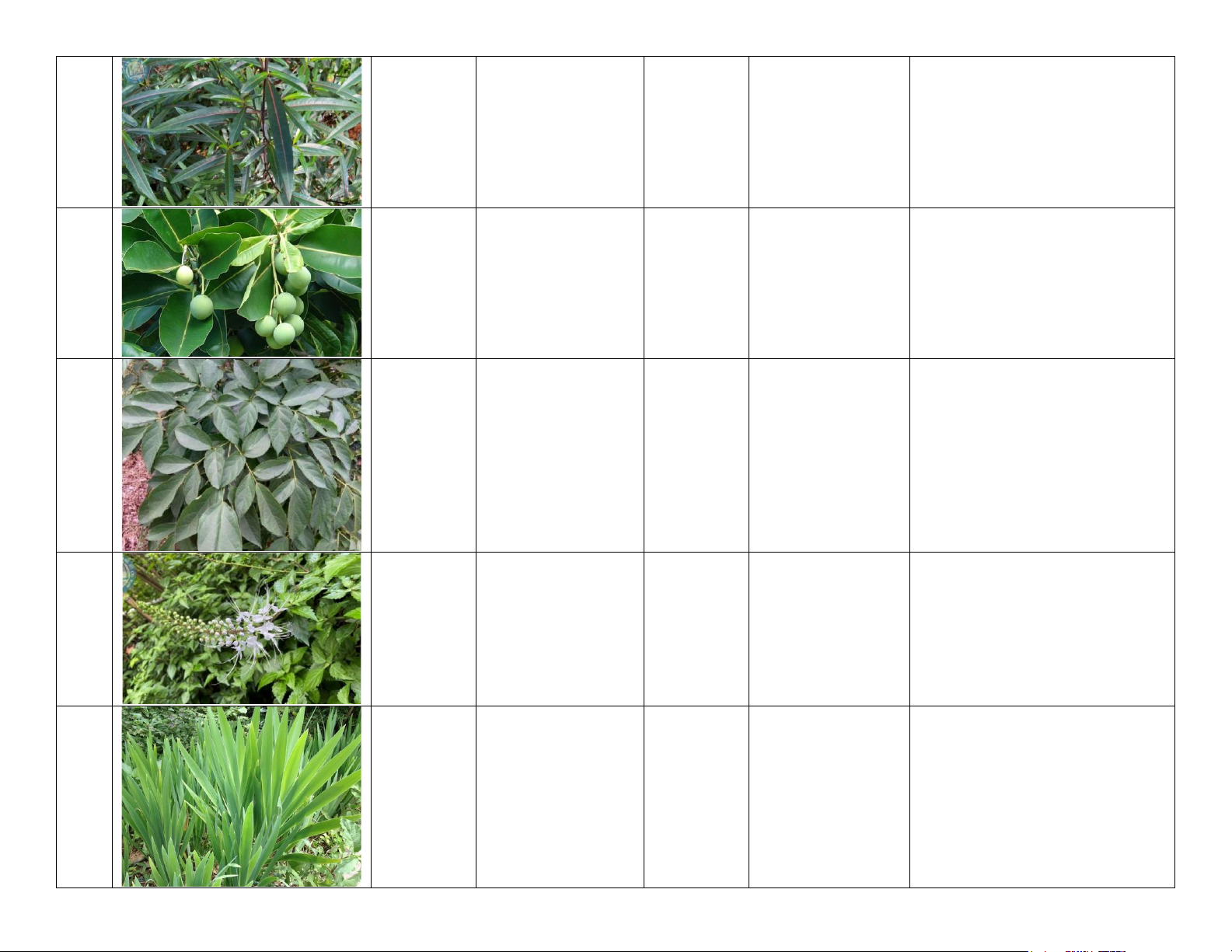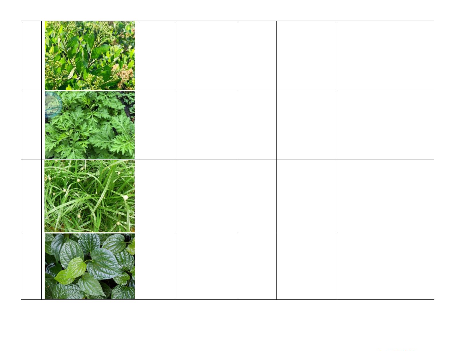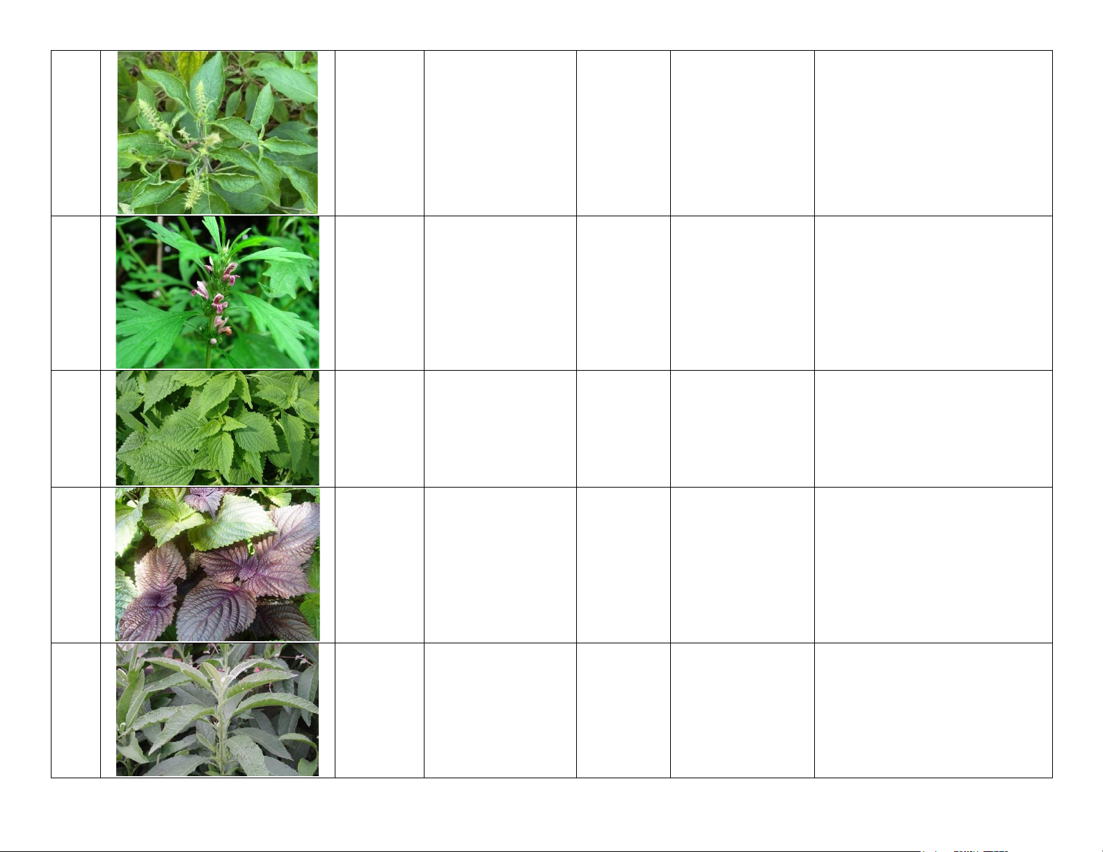 lOMoAR cPSD| 45469857 BUỔI 1 STT Ảnh Tên Việt Tên khoa học Bộ phận Thành phần Công dụng Nam 1 Bồ kết Gleditsia fera Quả, gai, Saponin,