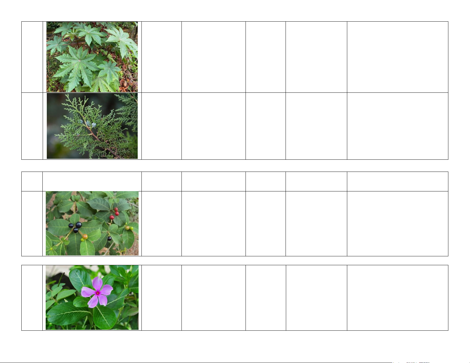 flavonoid: rutin tử nhân trị mất ngủ Cupressaceae BUỔI 4 STT Ảnh Tên Việt Tên khoa học Bộ phận Thành phần Công dụng Nam 1 Ba gạc Rauvolfia Rễ, vỏ rễ Alkaloid: