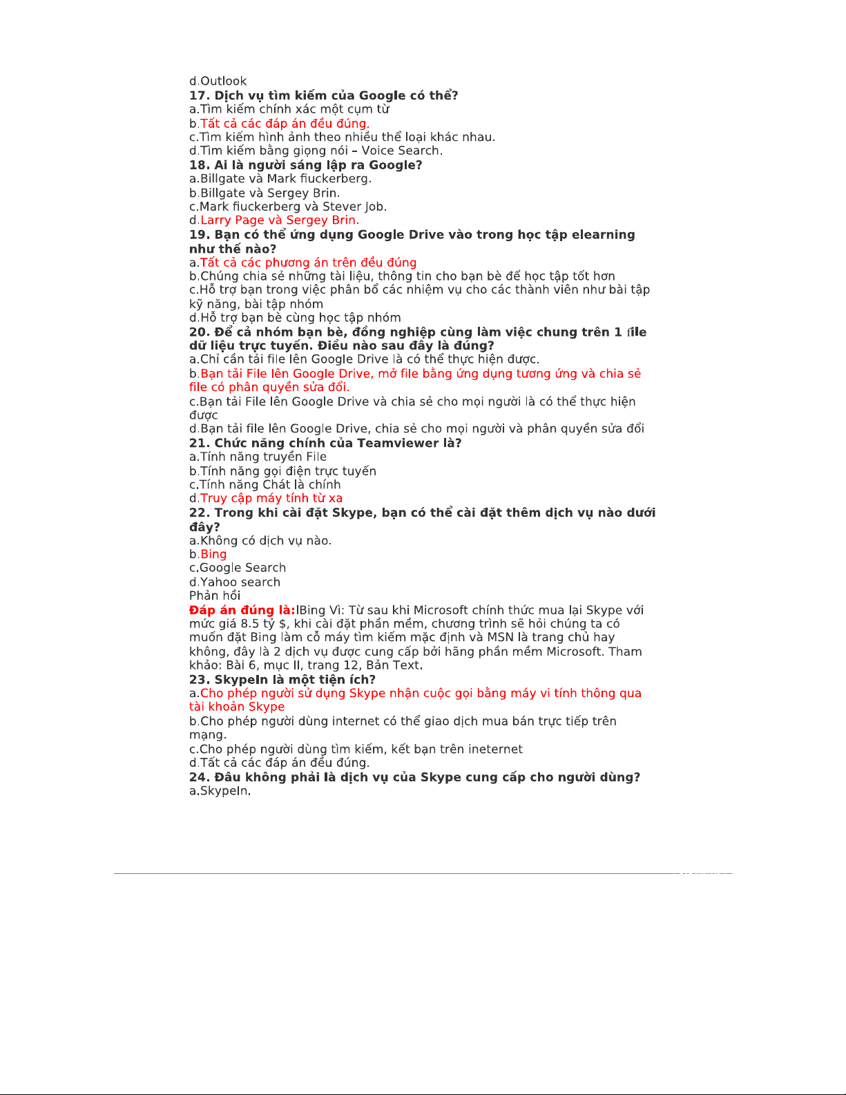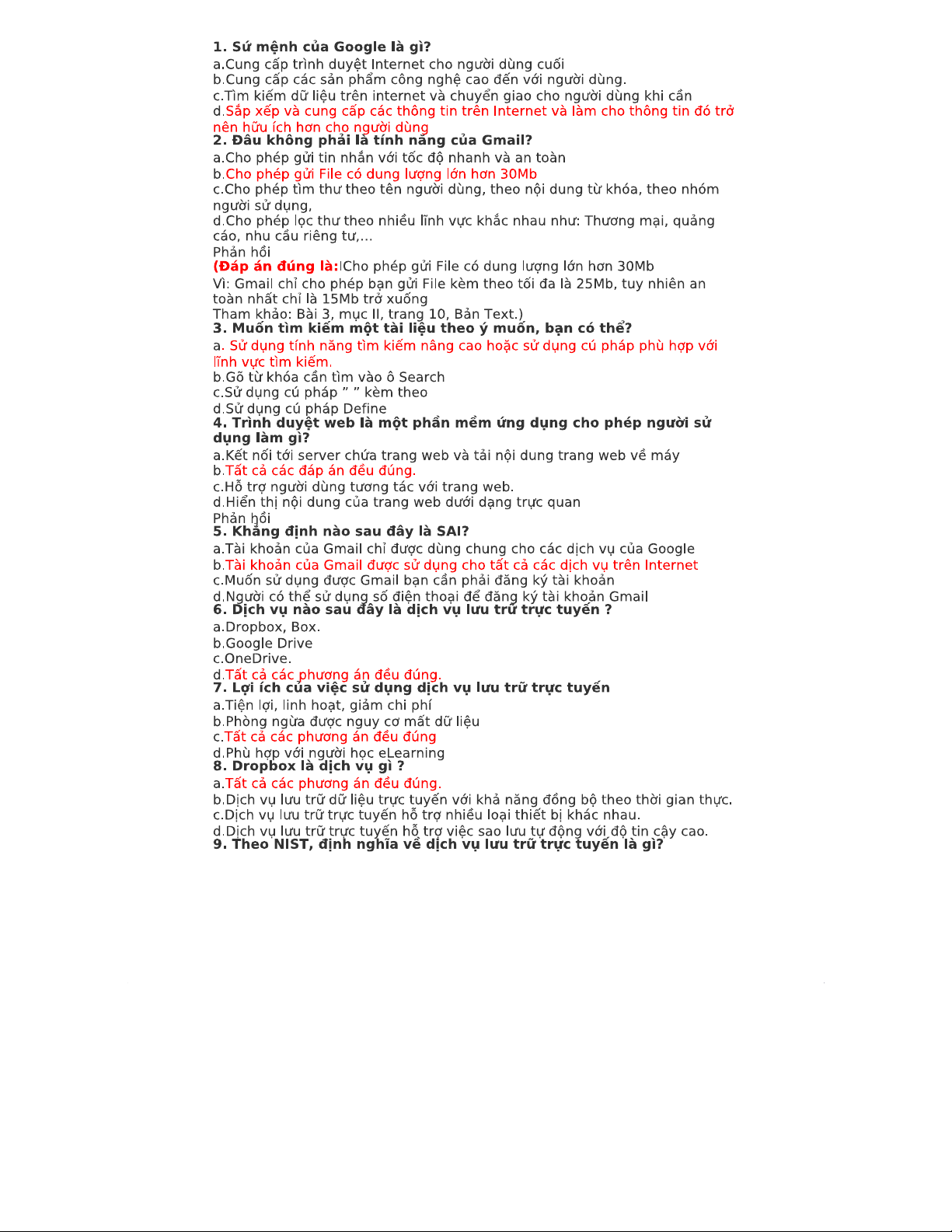NHẬP MÔN Internet: Các Câu Hỏi và Đáp Án Quan Trọng