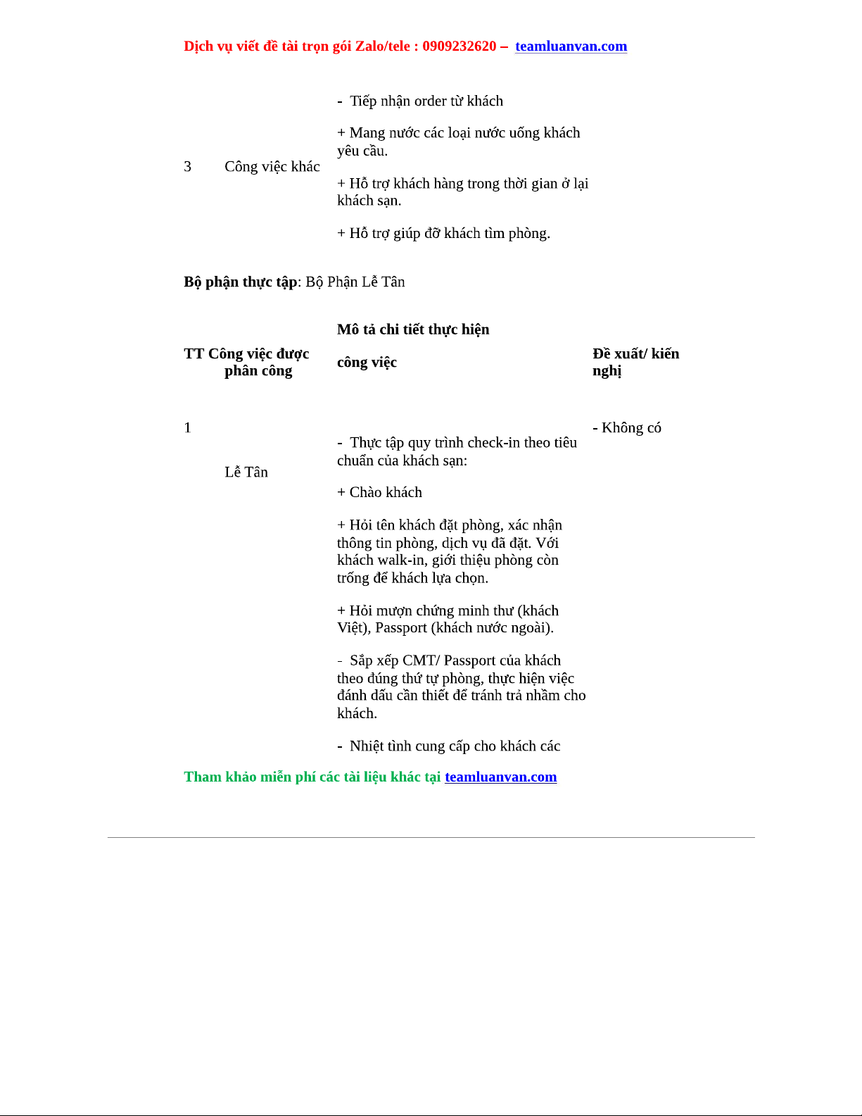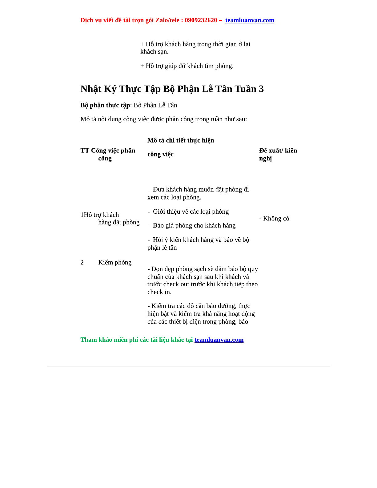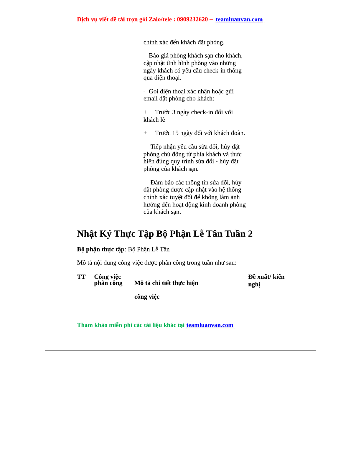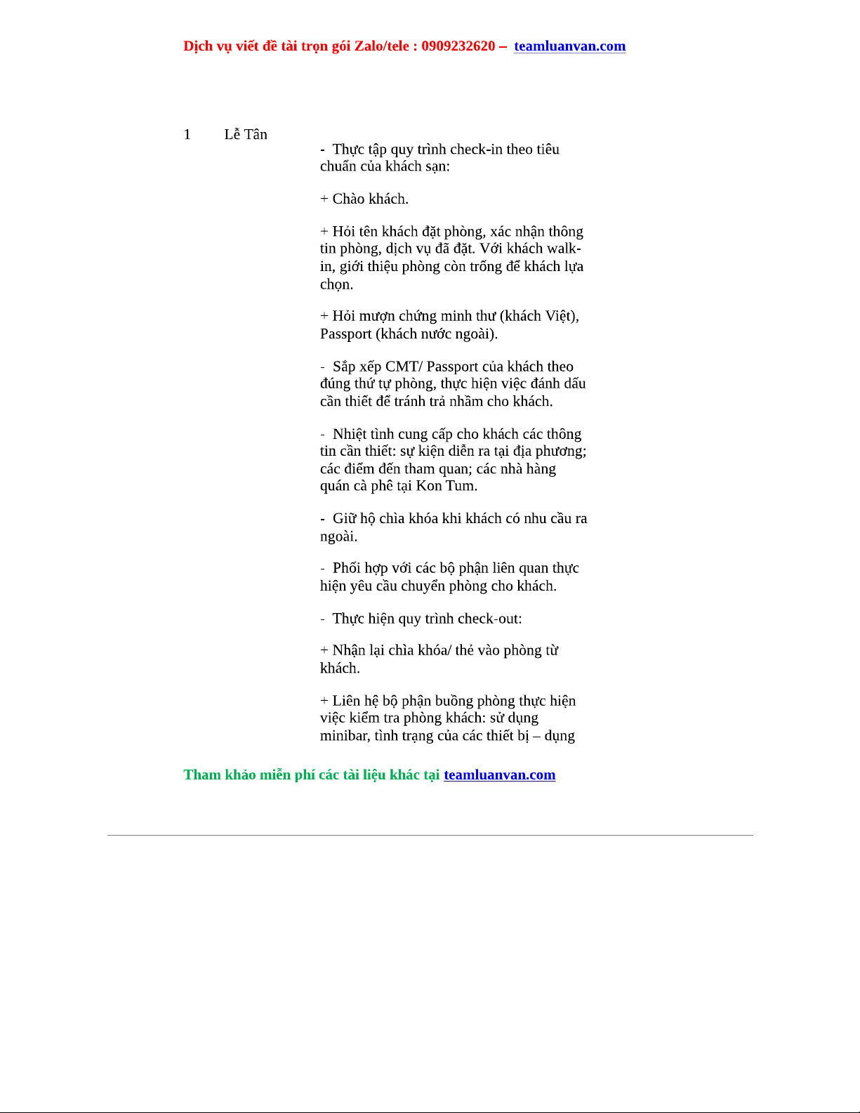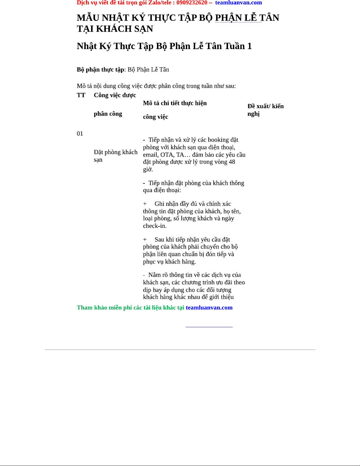 Nhật Ký Thực Tập Lễ Tân Tại Khách Sạn [123doc]: Tuần 1-8
