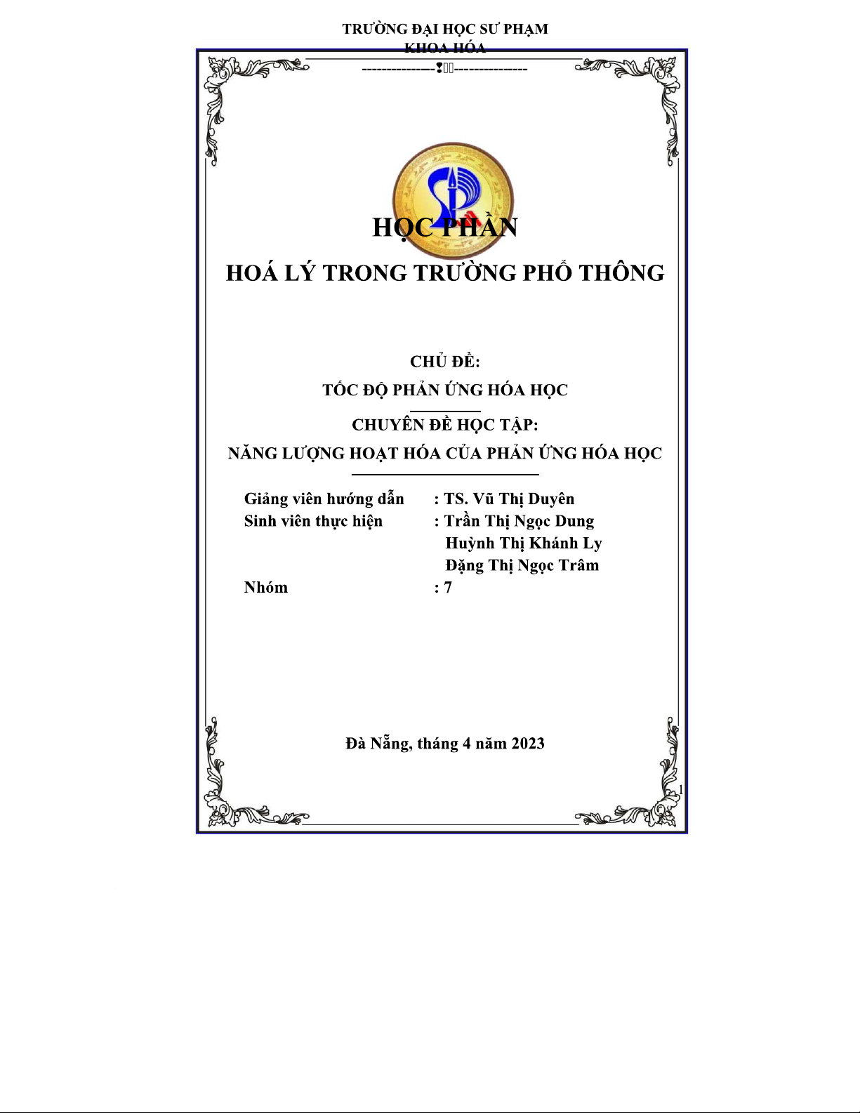Nhóm 7 - Năng Lượng Hoạt Hóa và Tốc Độ Phản Ứng Hóa Học + CDHT