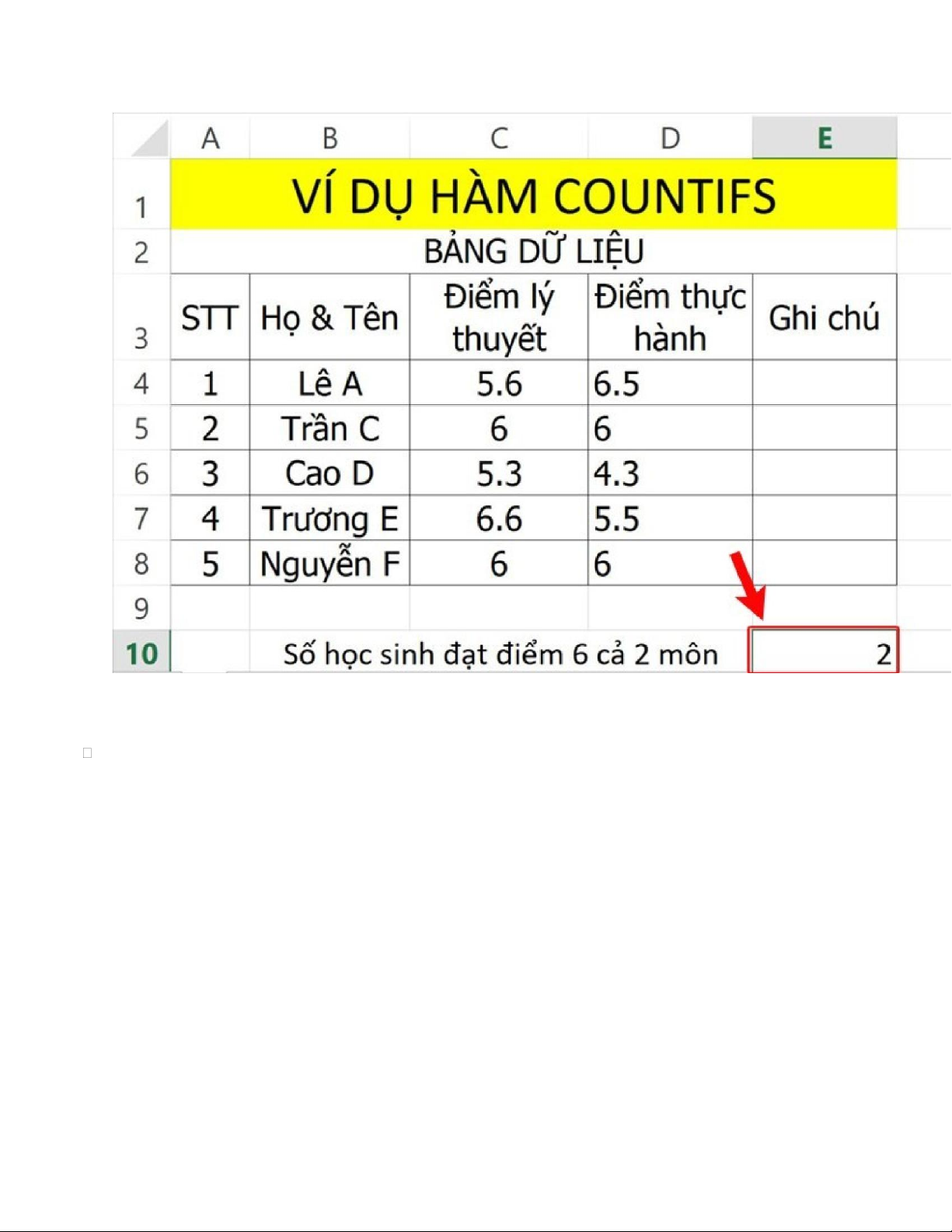 Ví dụ: Tìm số học sinh có điểm 6 cả 2 phần thi trong bảng dữ liệu sau: