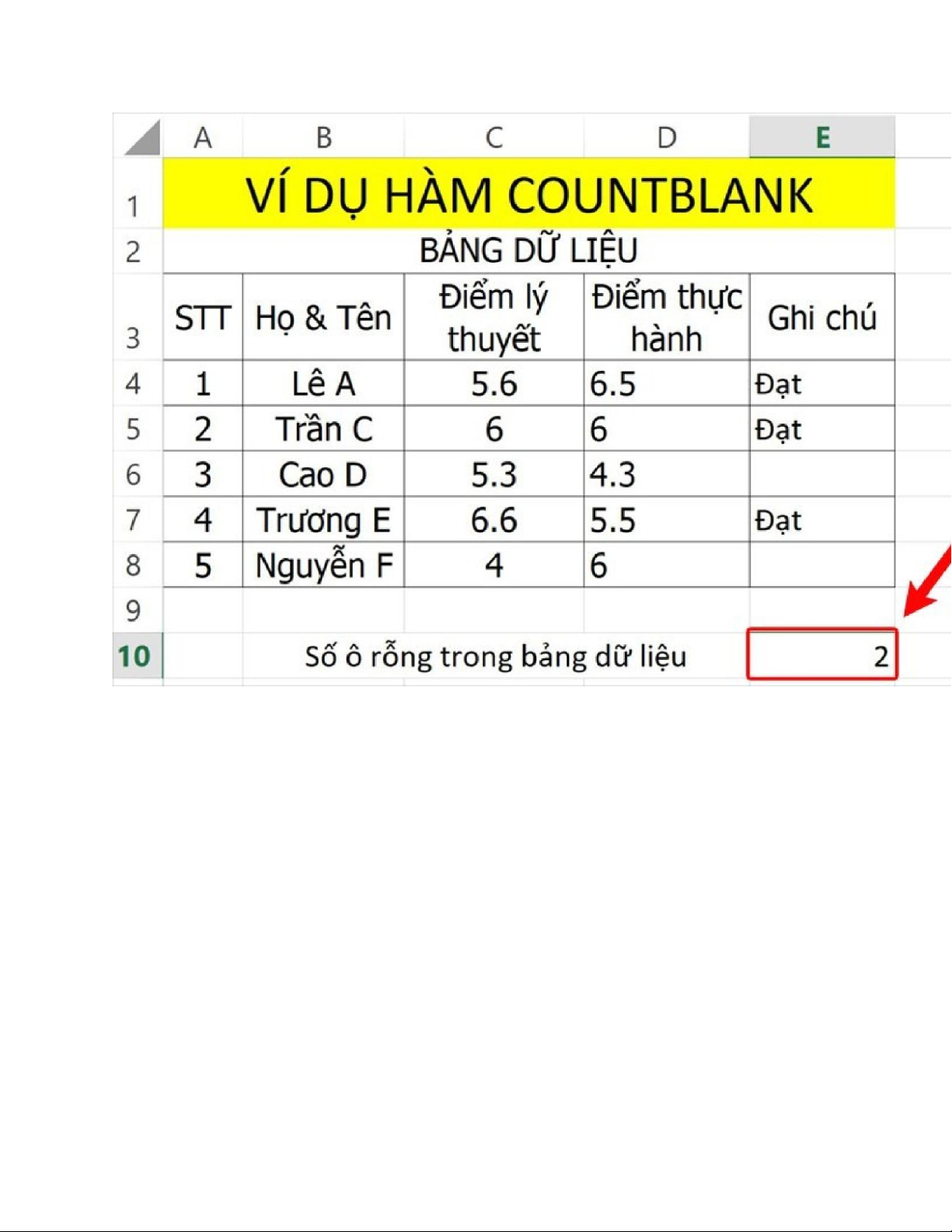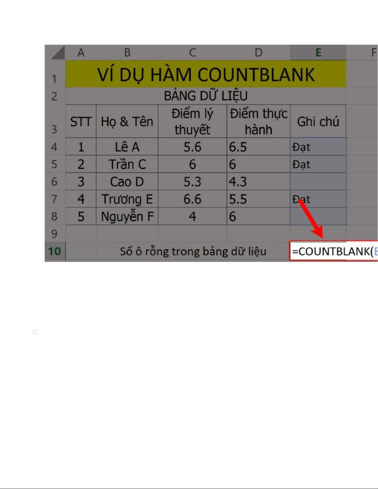 5. Hàm COUNTBLANK: Hàm đếm các ô rỗng trong Excel