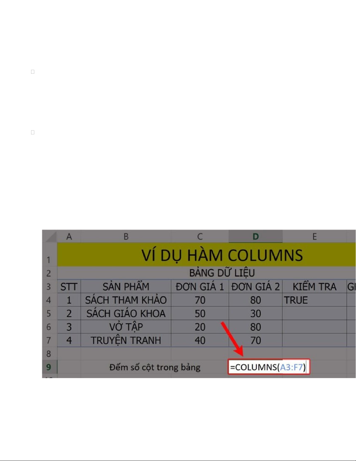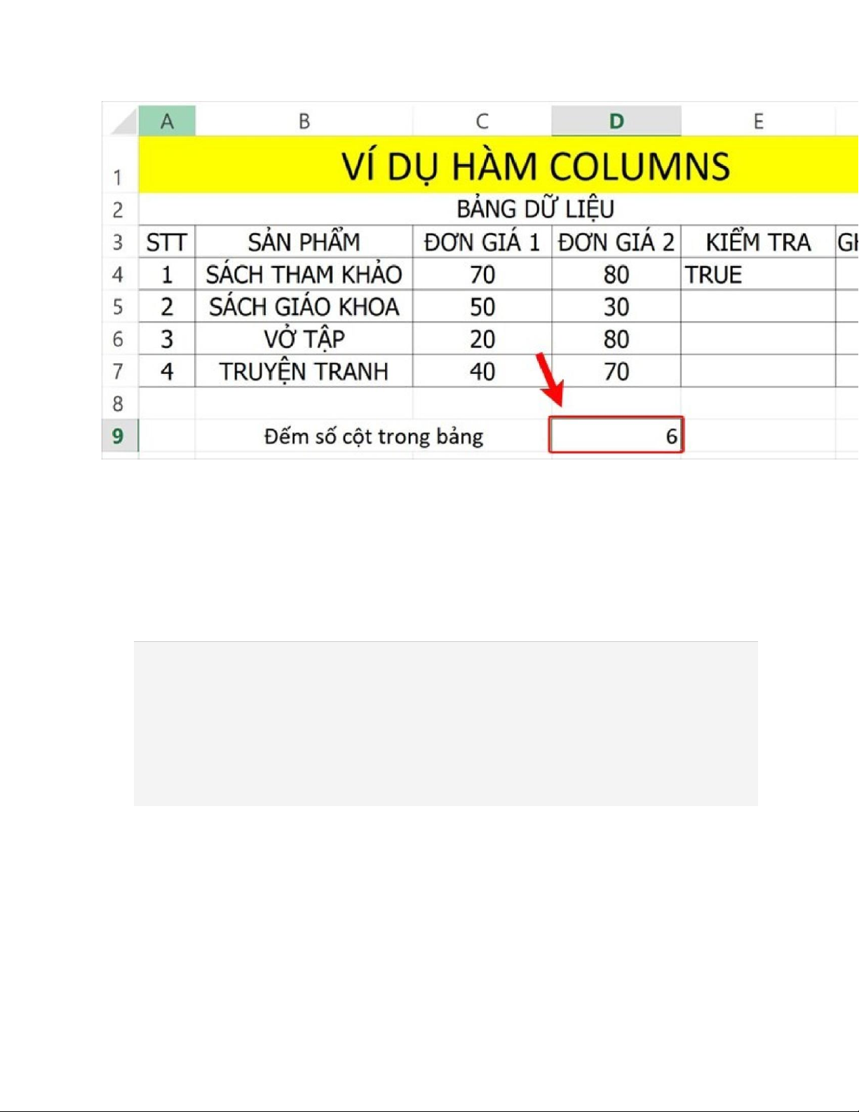 Cú pháp hàm COLUMNS: =COLUMNS(array) Trong đó: