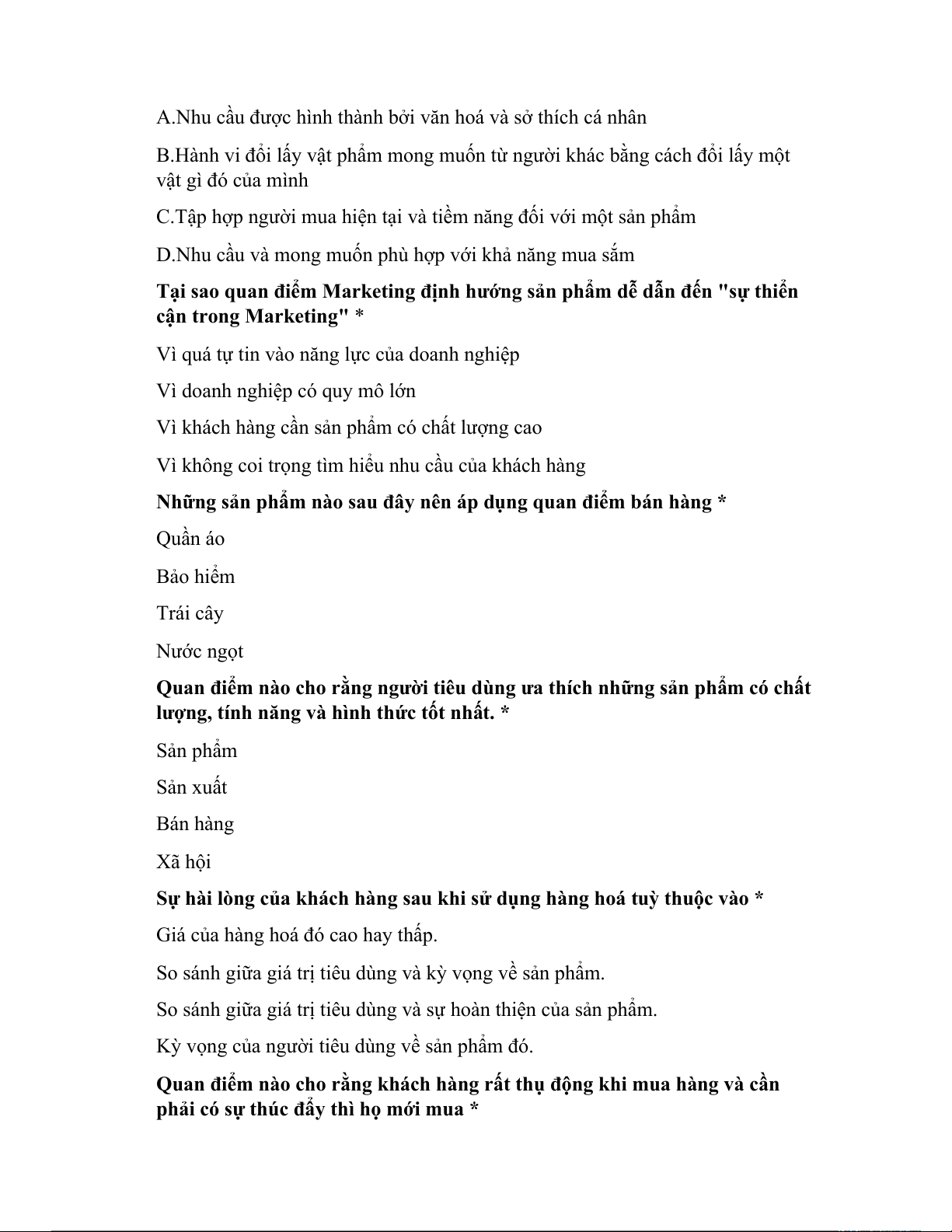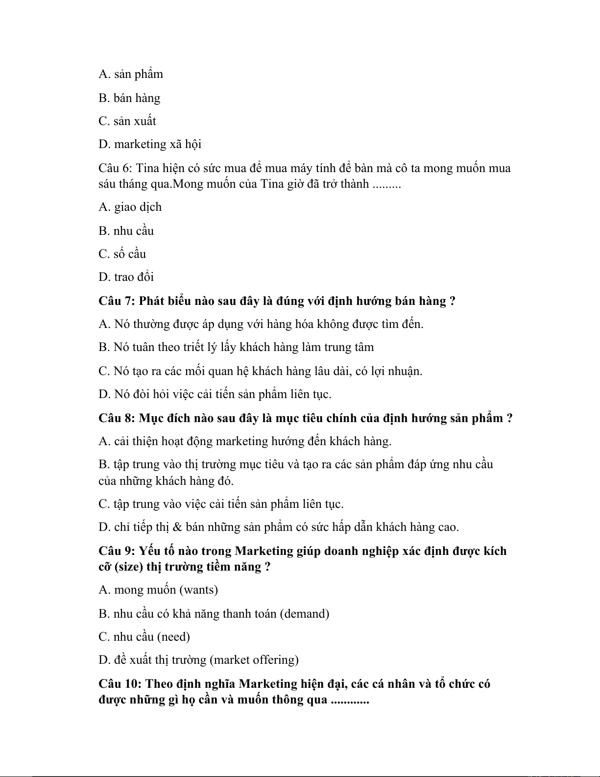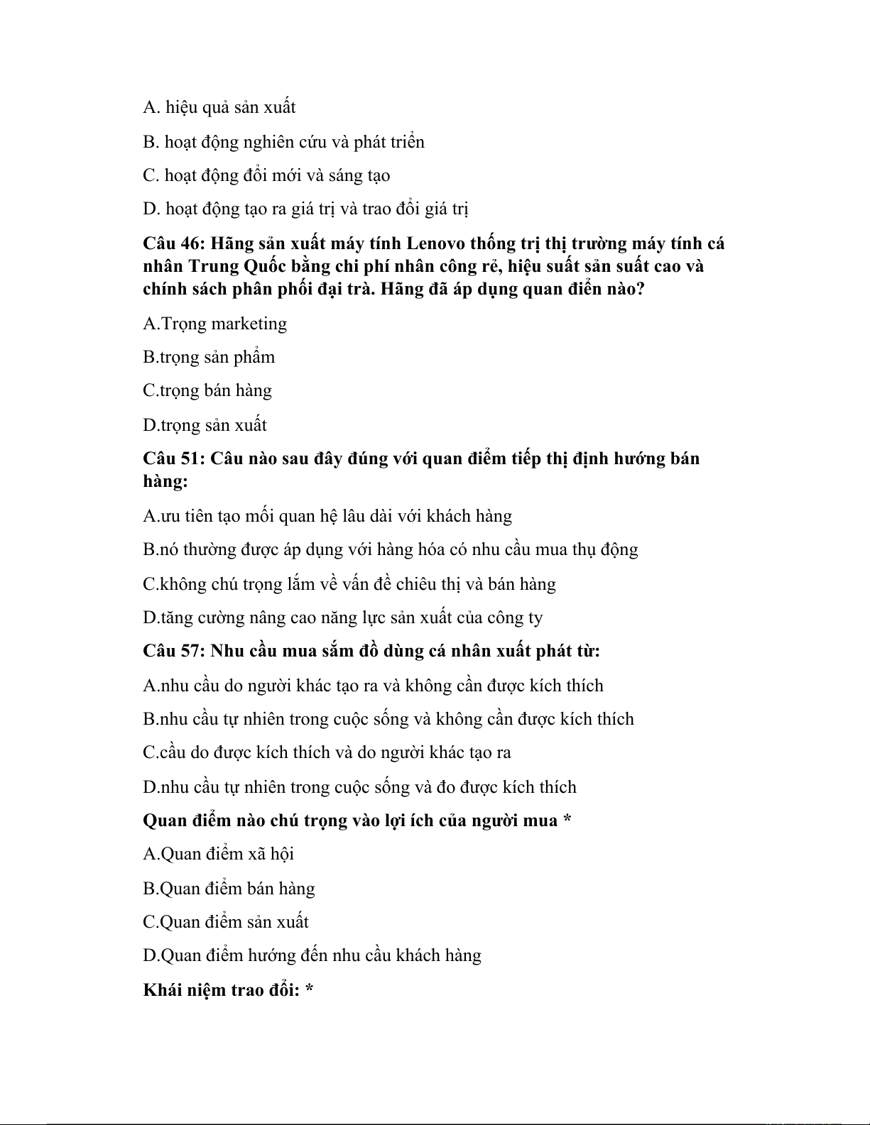Câu 51: Câu nào sau đây đúng với quan điểm tiếp thị định hướng bán hàng: