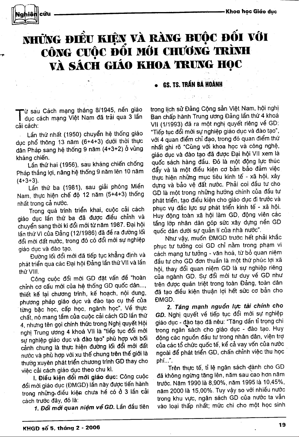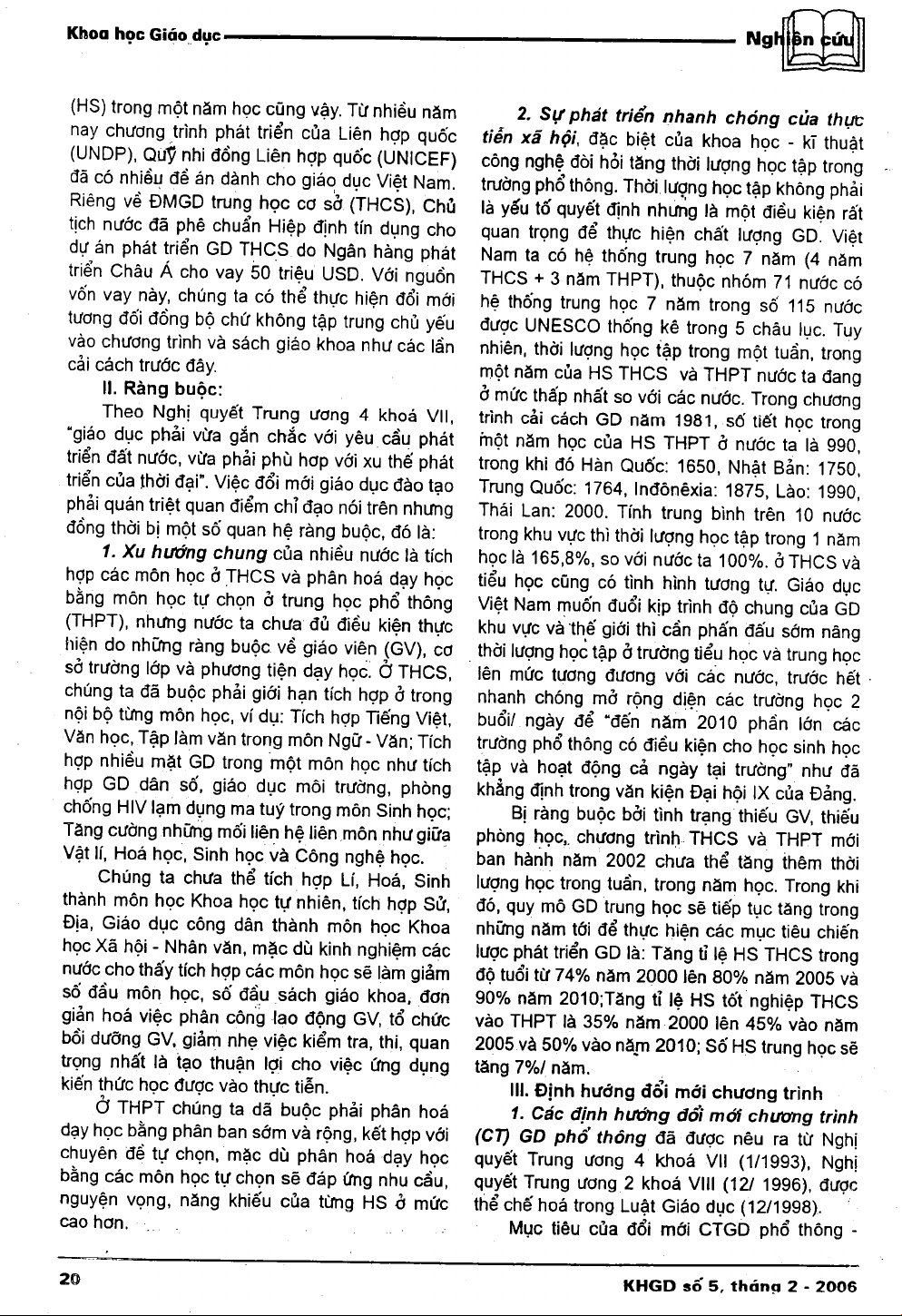 - Những điều kiện và ràng buộc đối với công cuộc đổi mới chương trình và sách giáo khoa trung học
