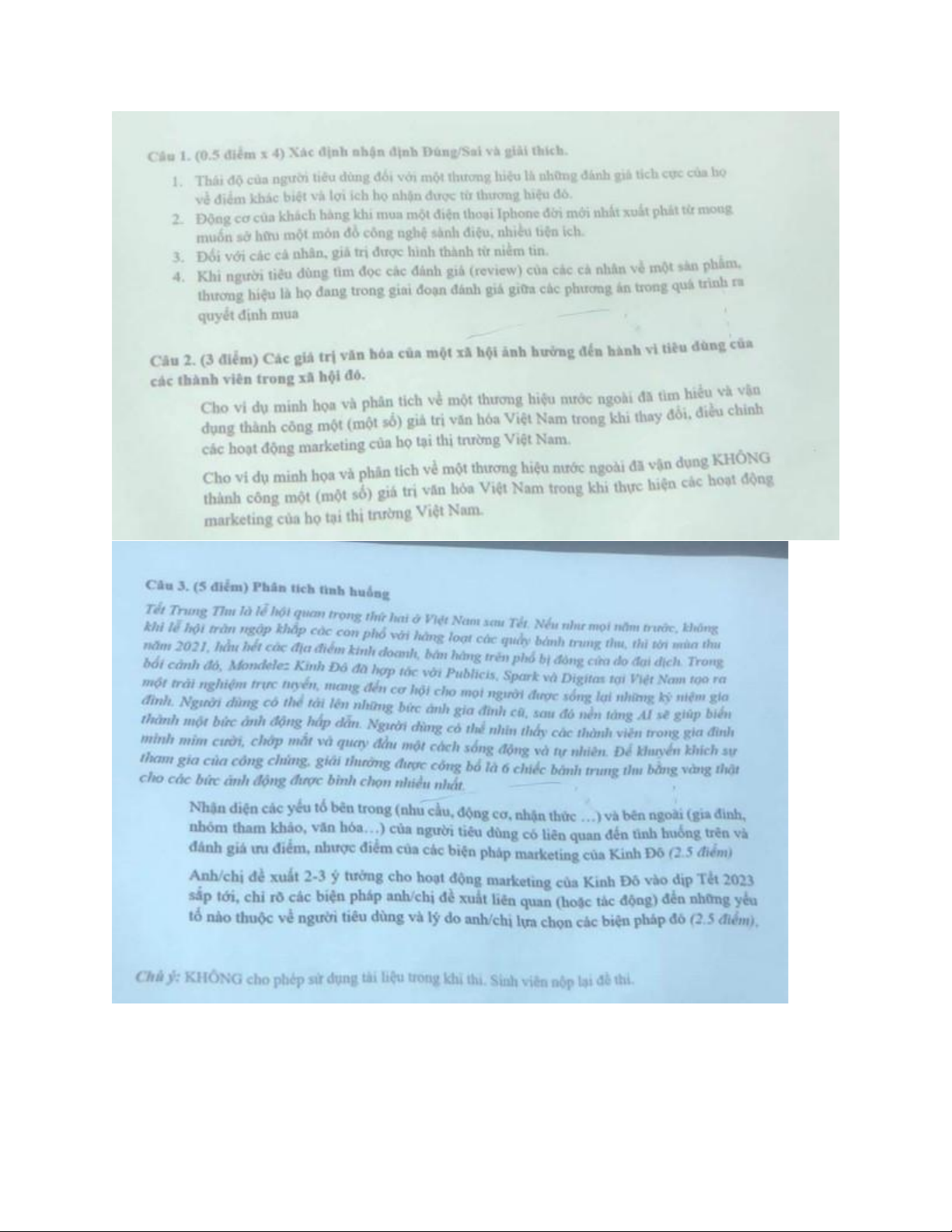 Chuẩn bị các ví dụ về hành vi NTD liên quan đến chủ đề của các chương Trả lời phần trắc nghiệm