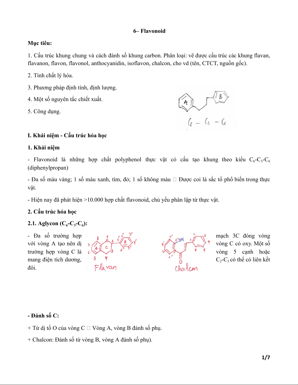 + Chalcon: Đánh số từ vòng B, vòng A đánh số phụ). 1/7