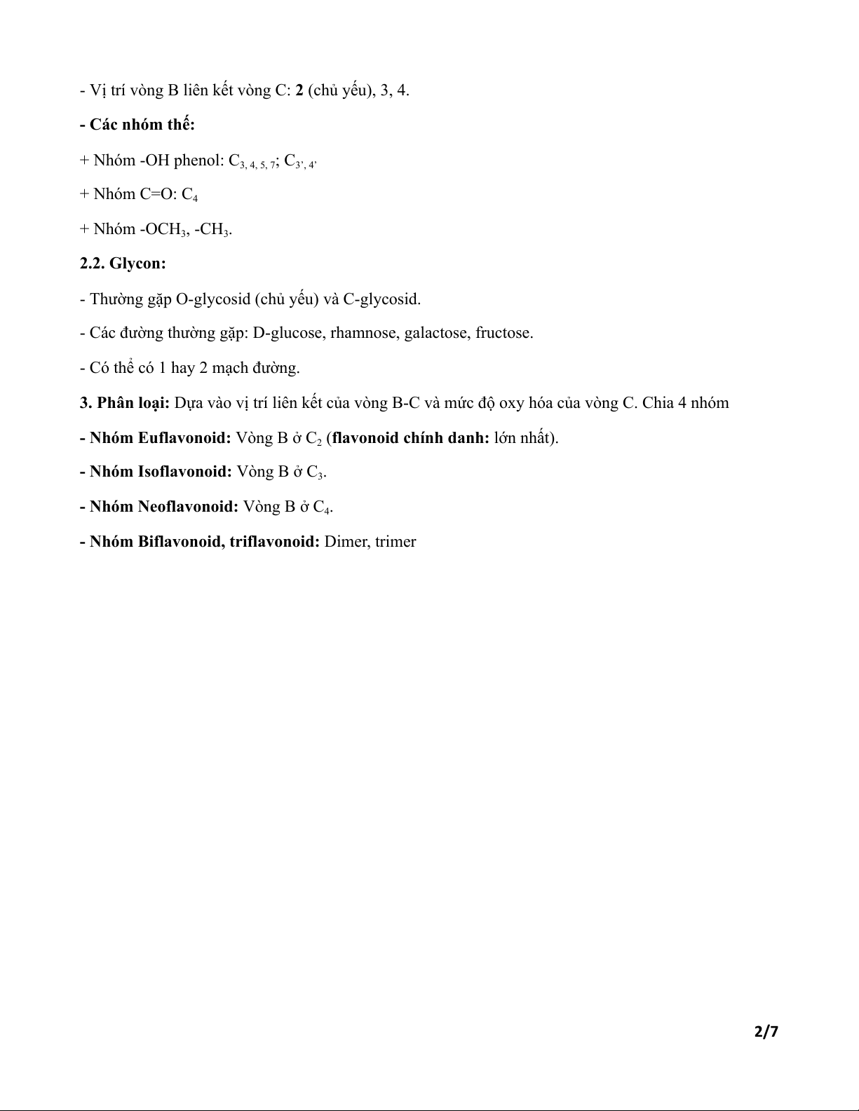 - Vị trí vòng B liên kết vòng C: 2 (chủ yếu), 3, 4. - Các nhóm thế: