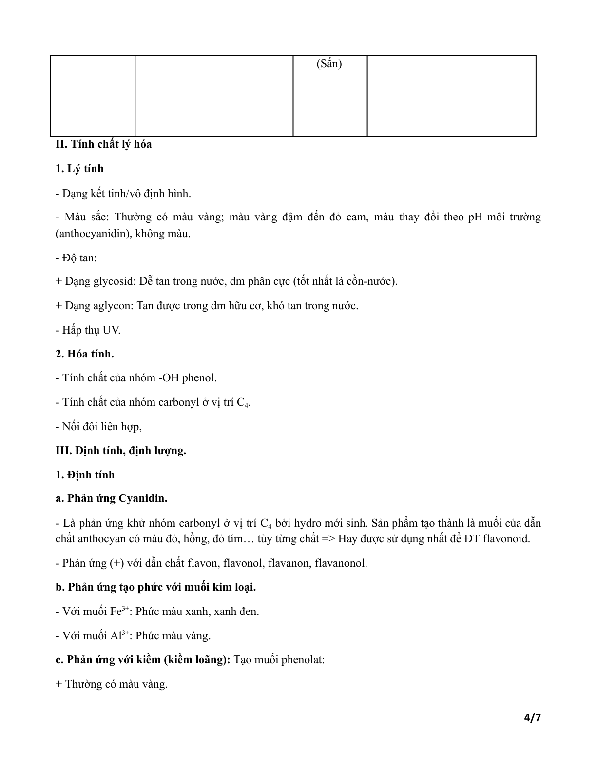 - Phản ứng (+) với dẫn chất flavon, flavonol, flavanon, flavanonol.