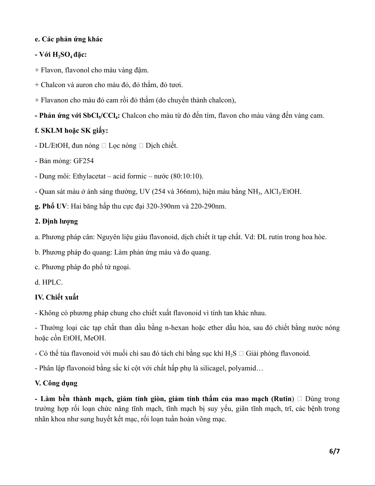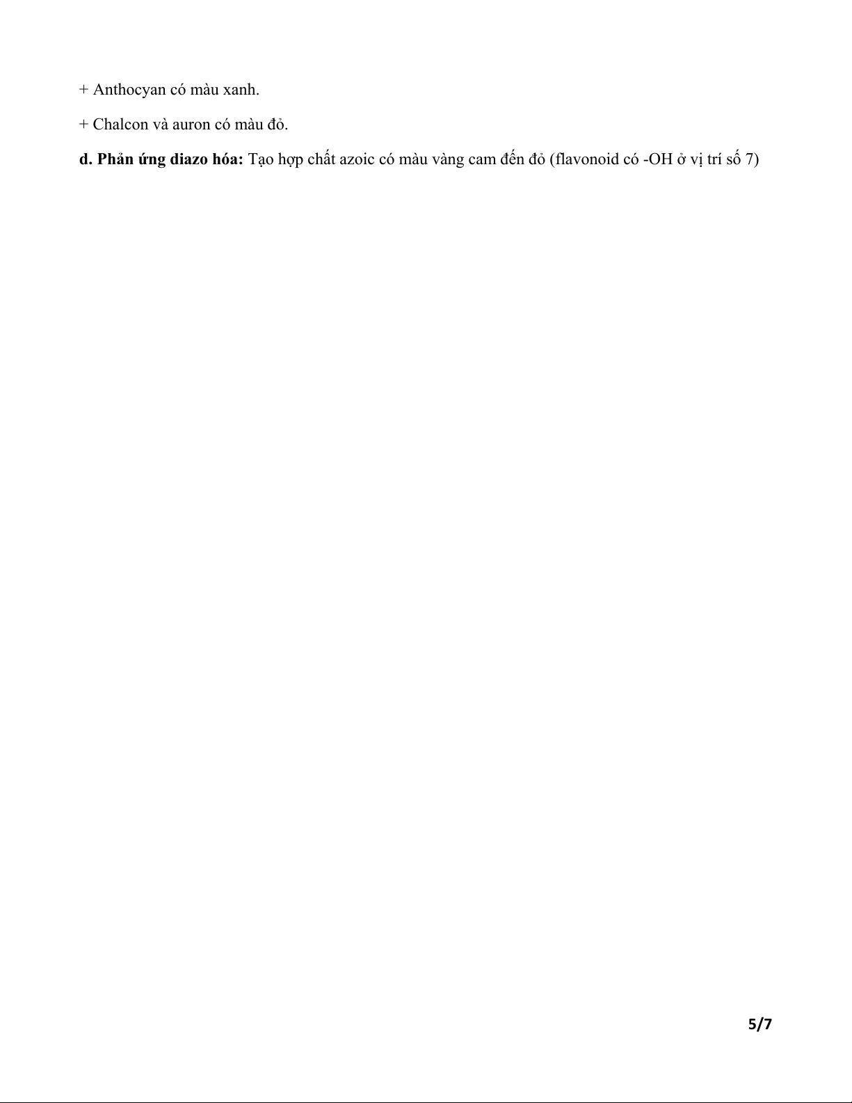 d. Phản ứng diazo hóa: Tạo hợp chất azoic có màu vàng cam đến đỏ (flavonoid có -OH ở vị trí số 7) 5/7