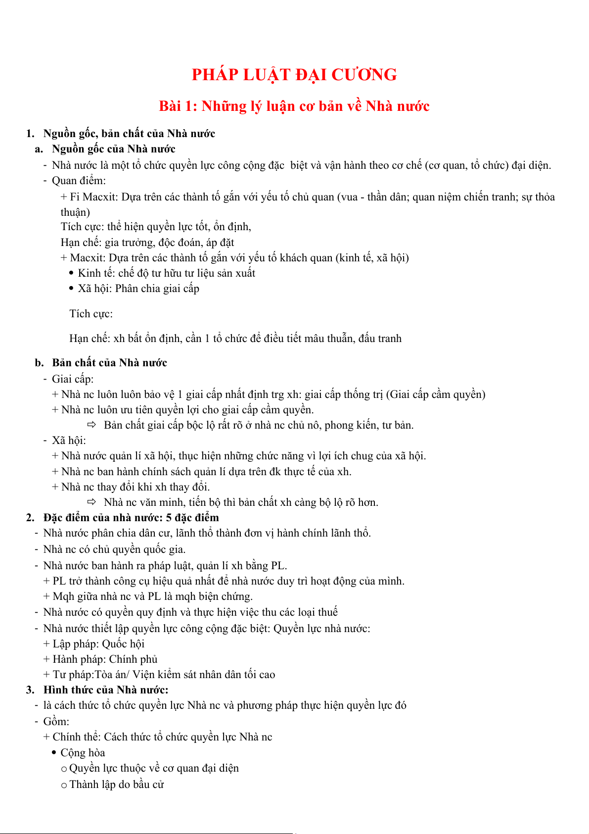 Bài 1: Những lý luận cơ bản về Nhà nước