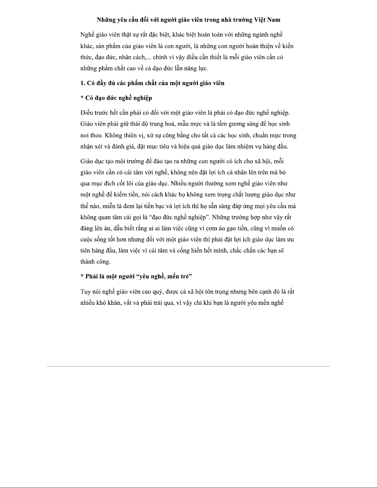 Những phẩm chất cần có của giáo viên trong nhà trường VN