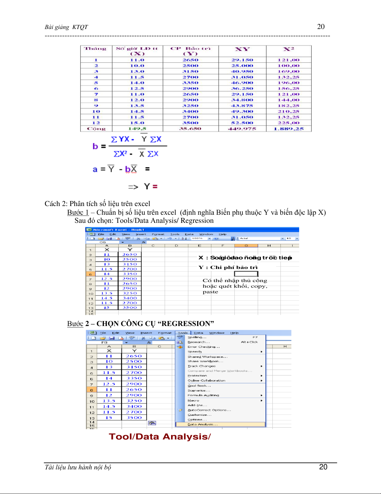 trên excel (định nghĩa Biến phụ thuộc Y và biến độc lập X)