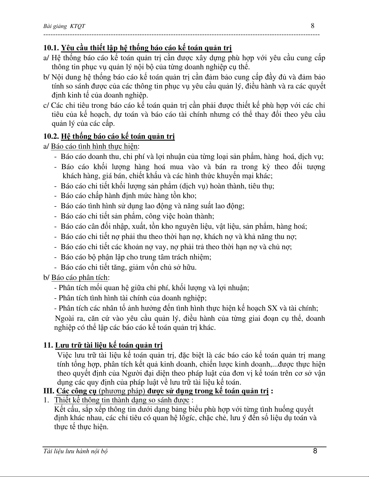 10. Yêu cầu, nộ idung Báo cáo kế toán quản trị Bài giảng KTQT 8