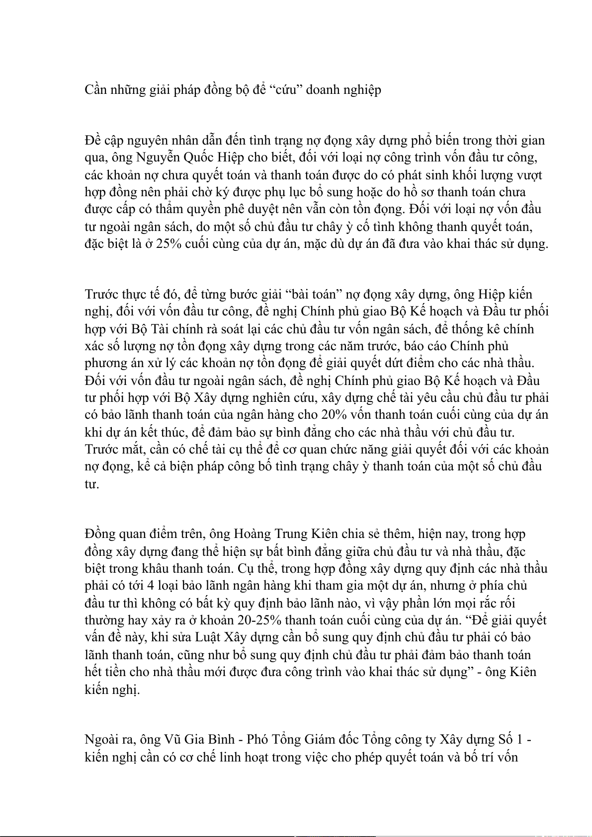 đồng. Cũng theo ông Hiệp, các nhà thầu xây dựng phần lớn có nguồn vốn eo hẹp,