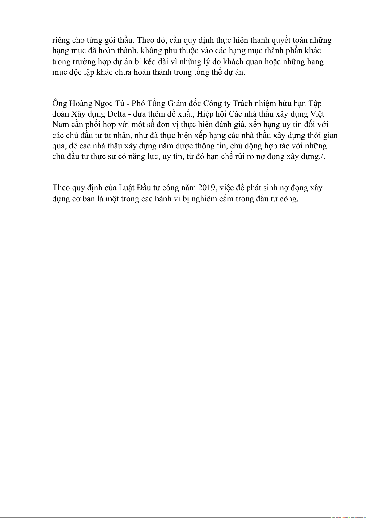 biết, đơn vị có những dự án, gói thầu thi công có nợ đọng xây dựng kéo dài cả
