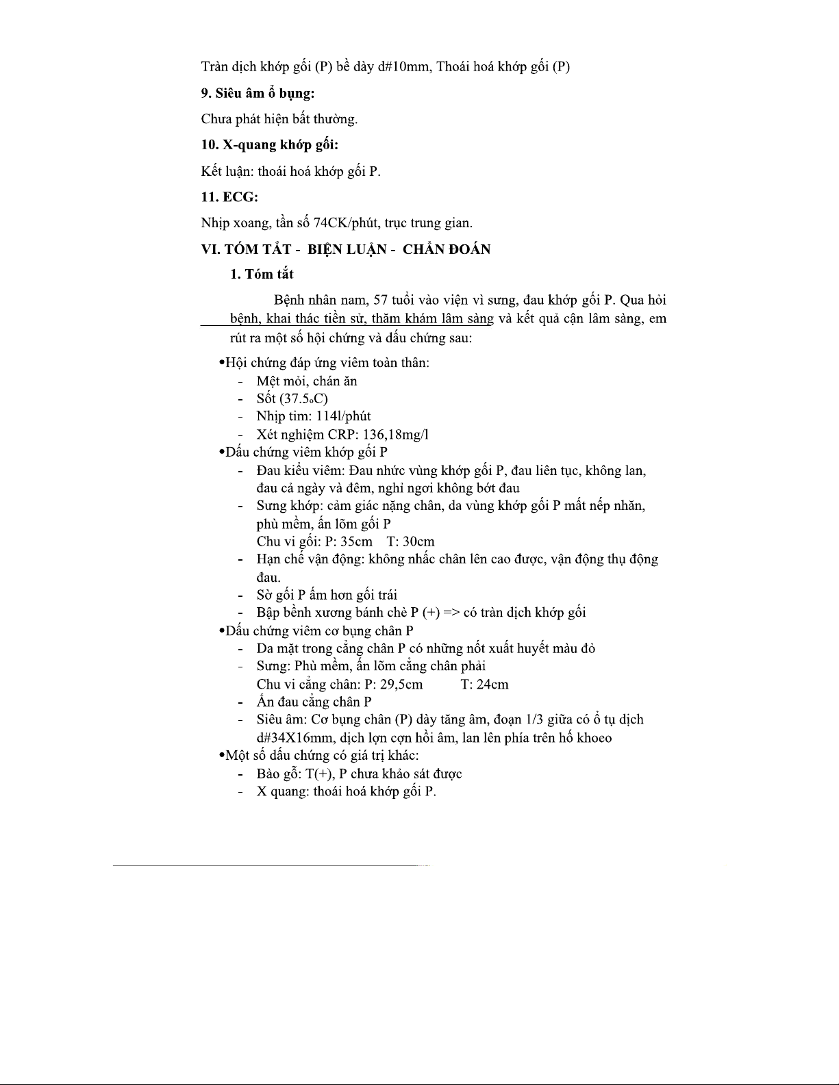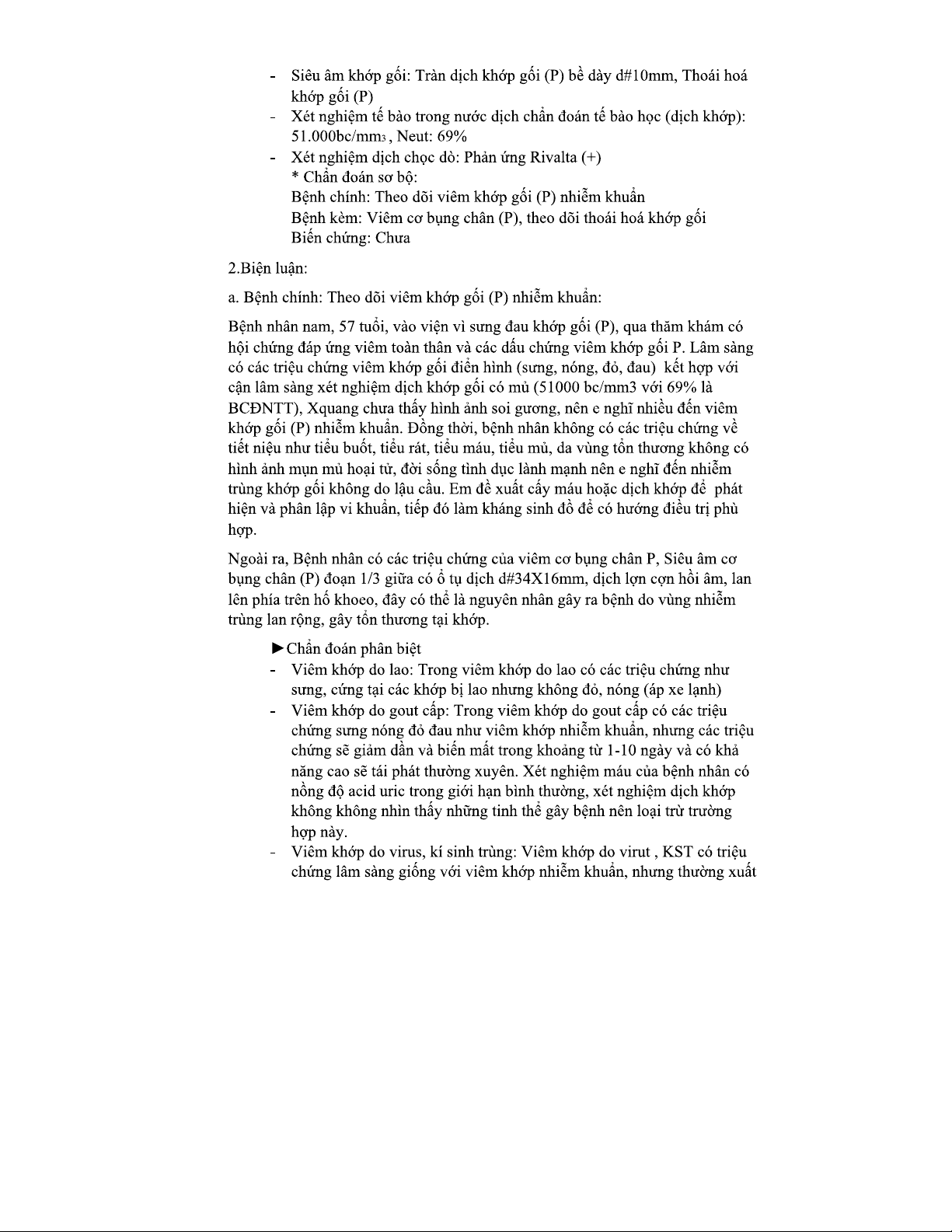 Nội CXK - Bệnh án khớp gối P: Chẩn đoán và điều trị viêm nhiễm