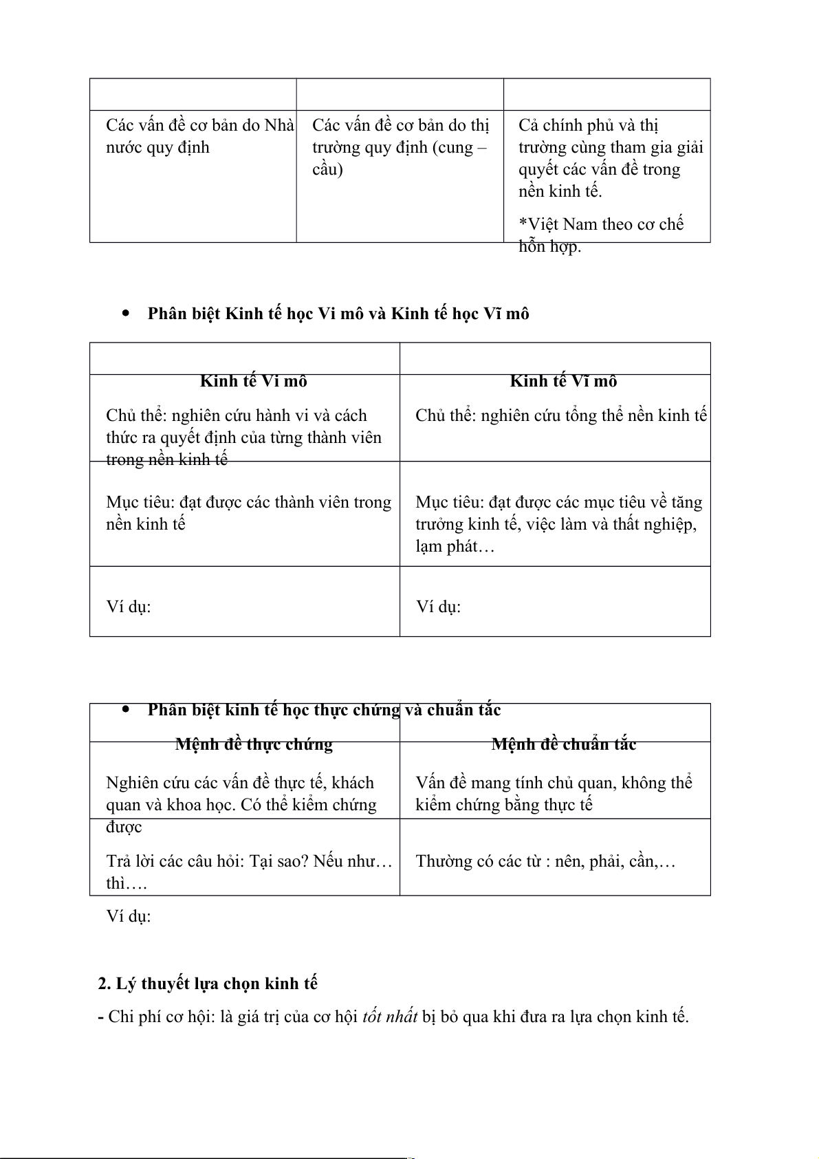 - Chi phí cơ hội: là giá trị của cơ hội tốt nhất bị bỏ qua khi đưa ra lựa chọn kinh tế.