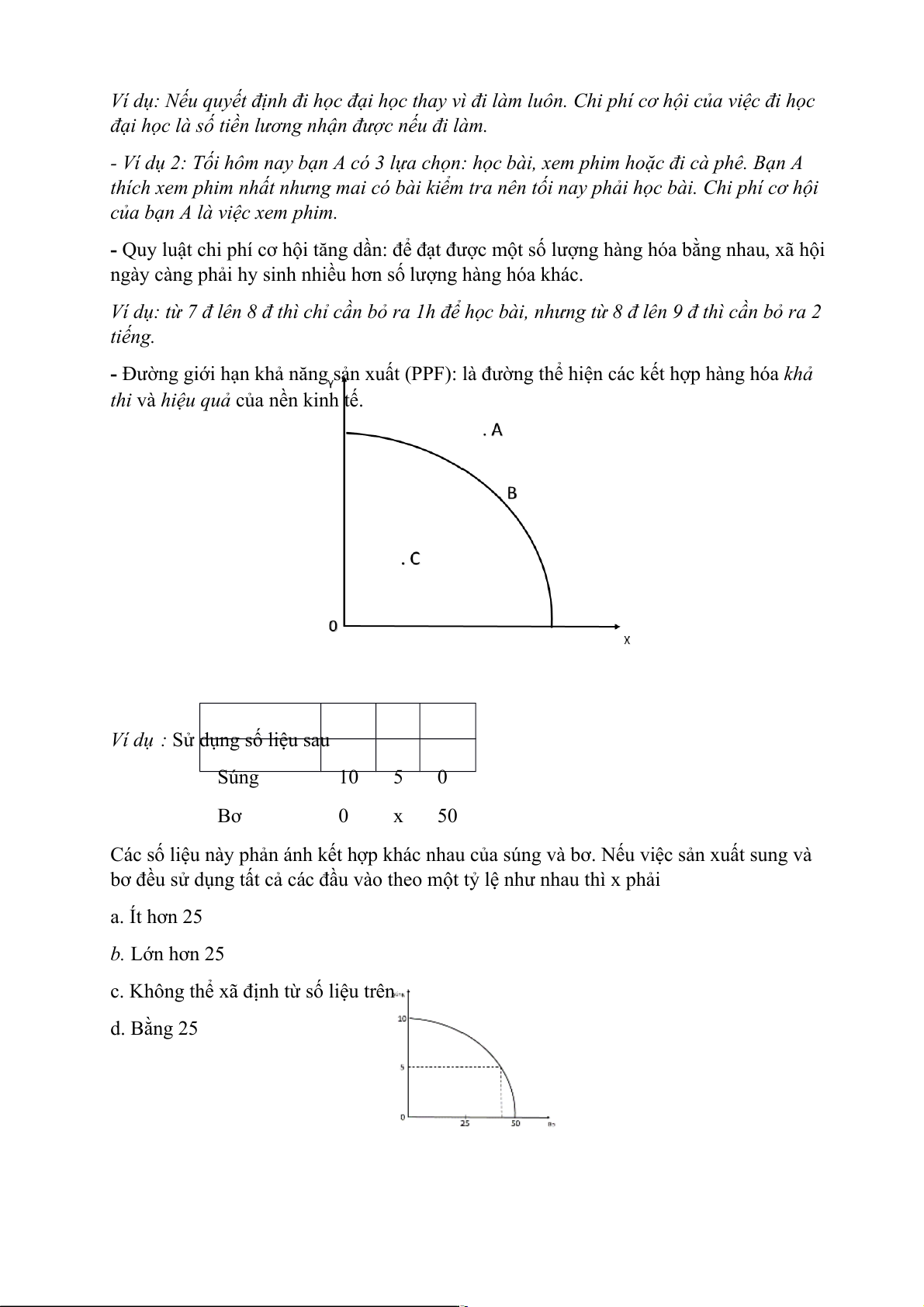 - Quy luật chi phí cơ hội tăng dần: để đạt được một số lượng hàng hóa bằng nhau, xã hội