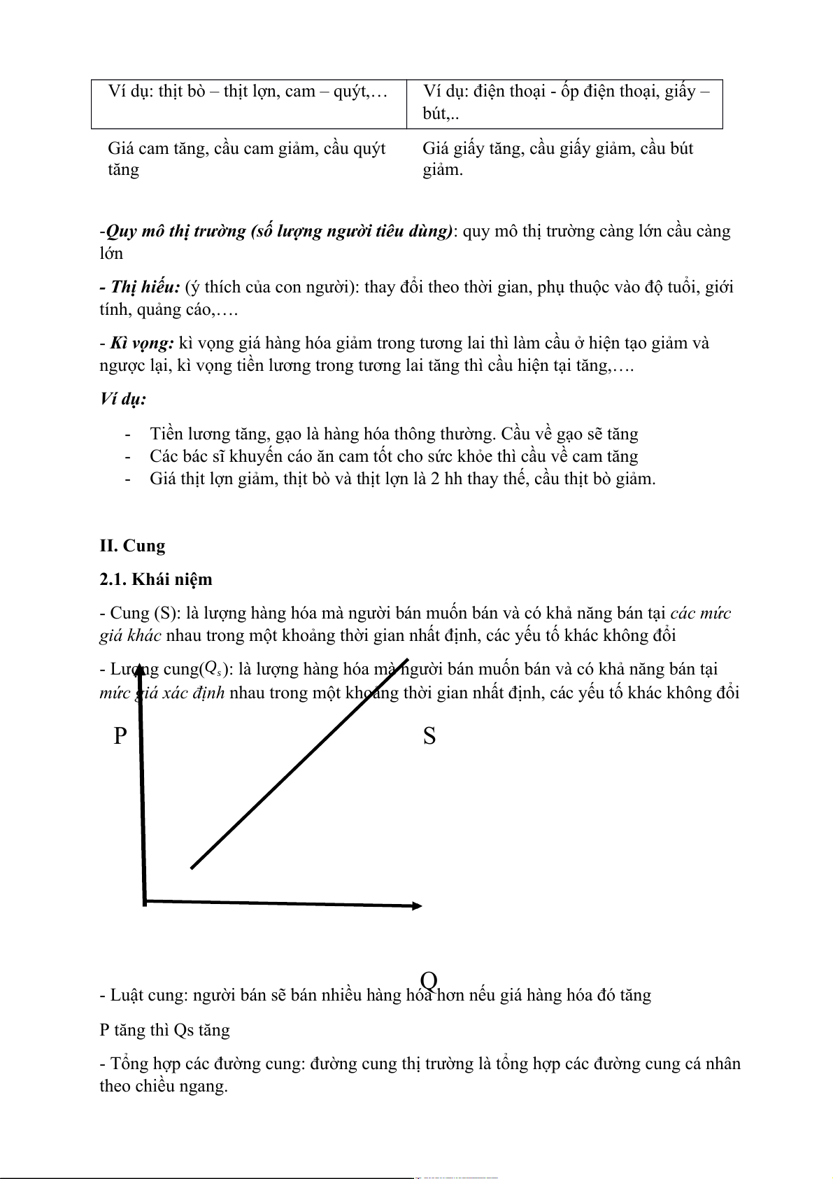 - Giá thịt lợn giảm, thịt bò và thịt lợn là 2 hh thay thế, cầu thịt bò giảm. II. Cung 2.1. Khái niệm