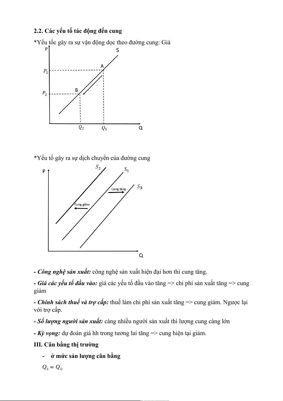 2.2. Các yếu tố tác động đến cung
