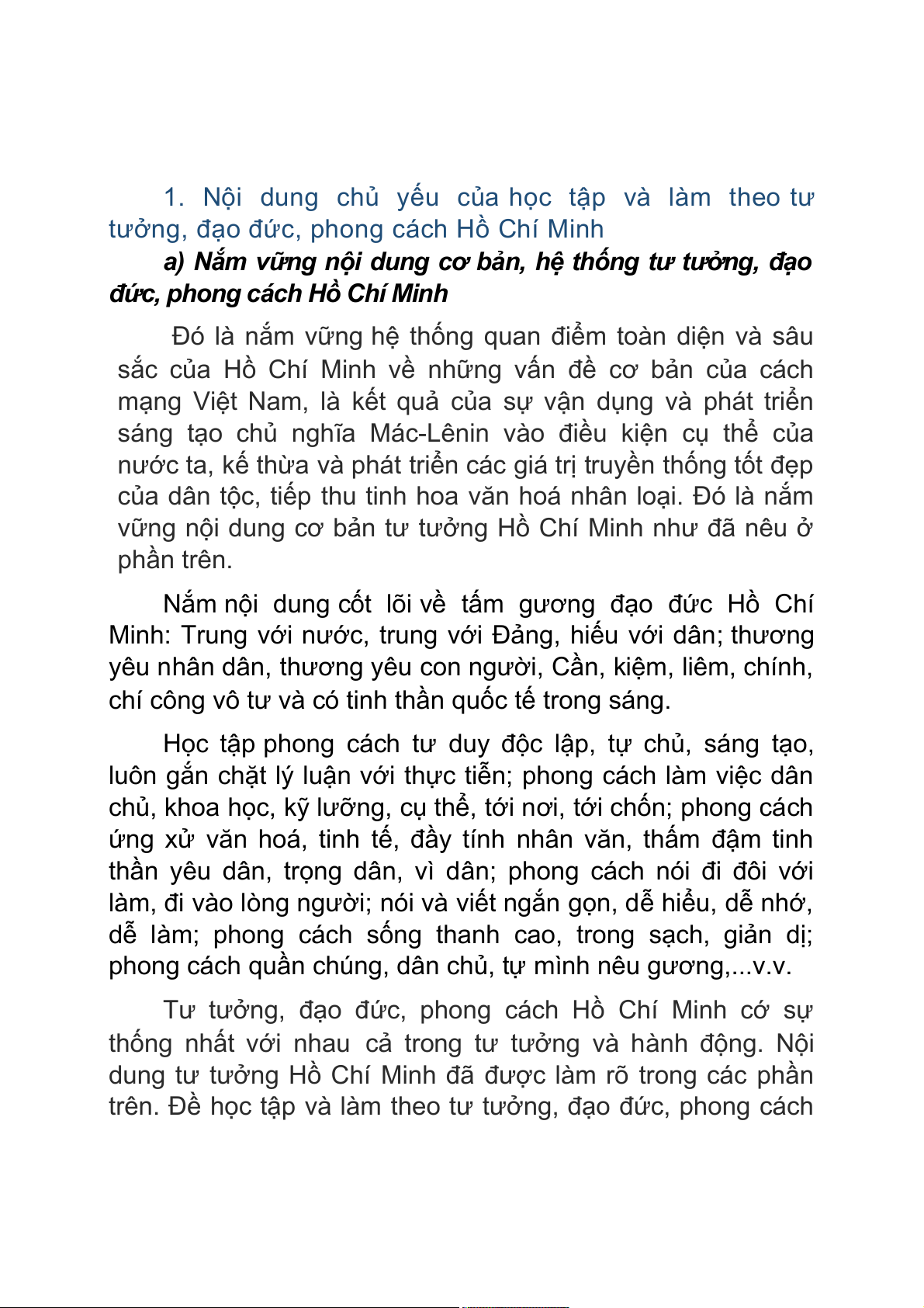 1. Nội dung chủ yếu của học tập và làm theo tư