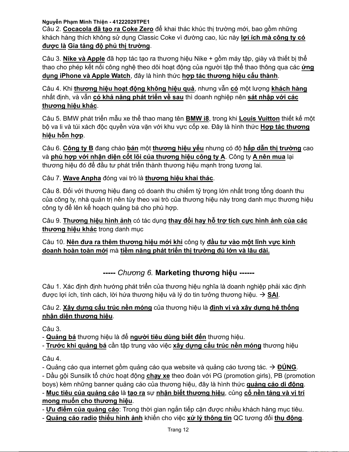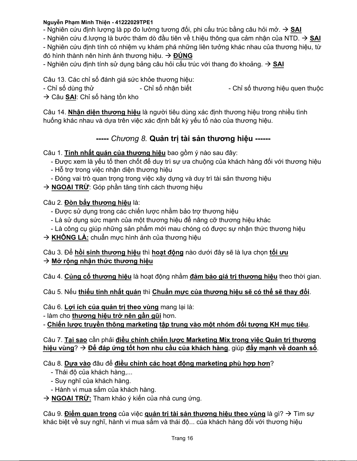 Câu 12. Việc quản lý thương hiệu hiệu quả đòi hỏi phải? → Có một cho cái nhìn dài hạn chiến lược Marketing