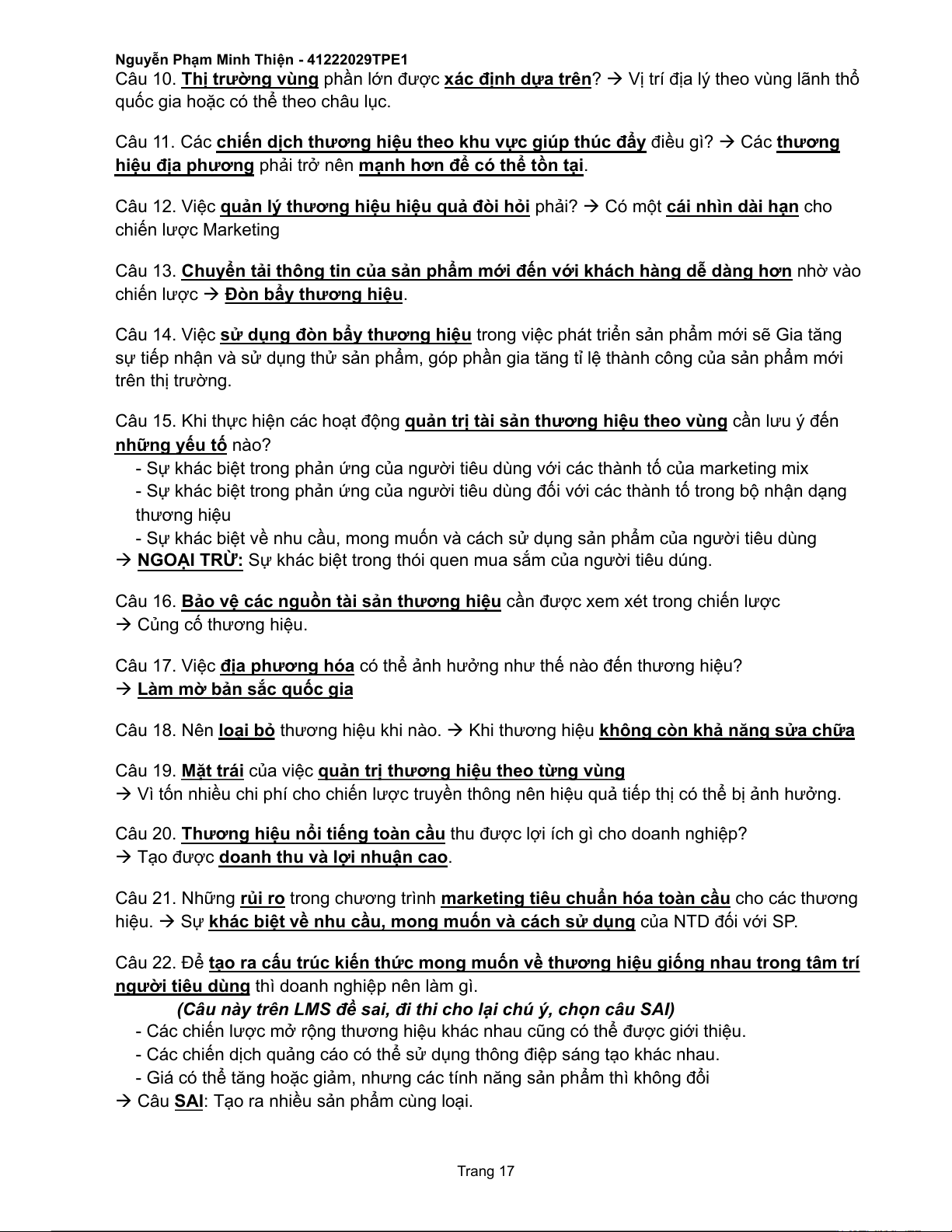 Câu 11. Các chiến dịch thương hiệu theo khu vực giúp thúc đẩy điều gì? → Các thương