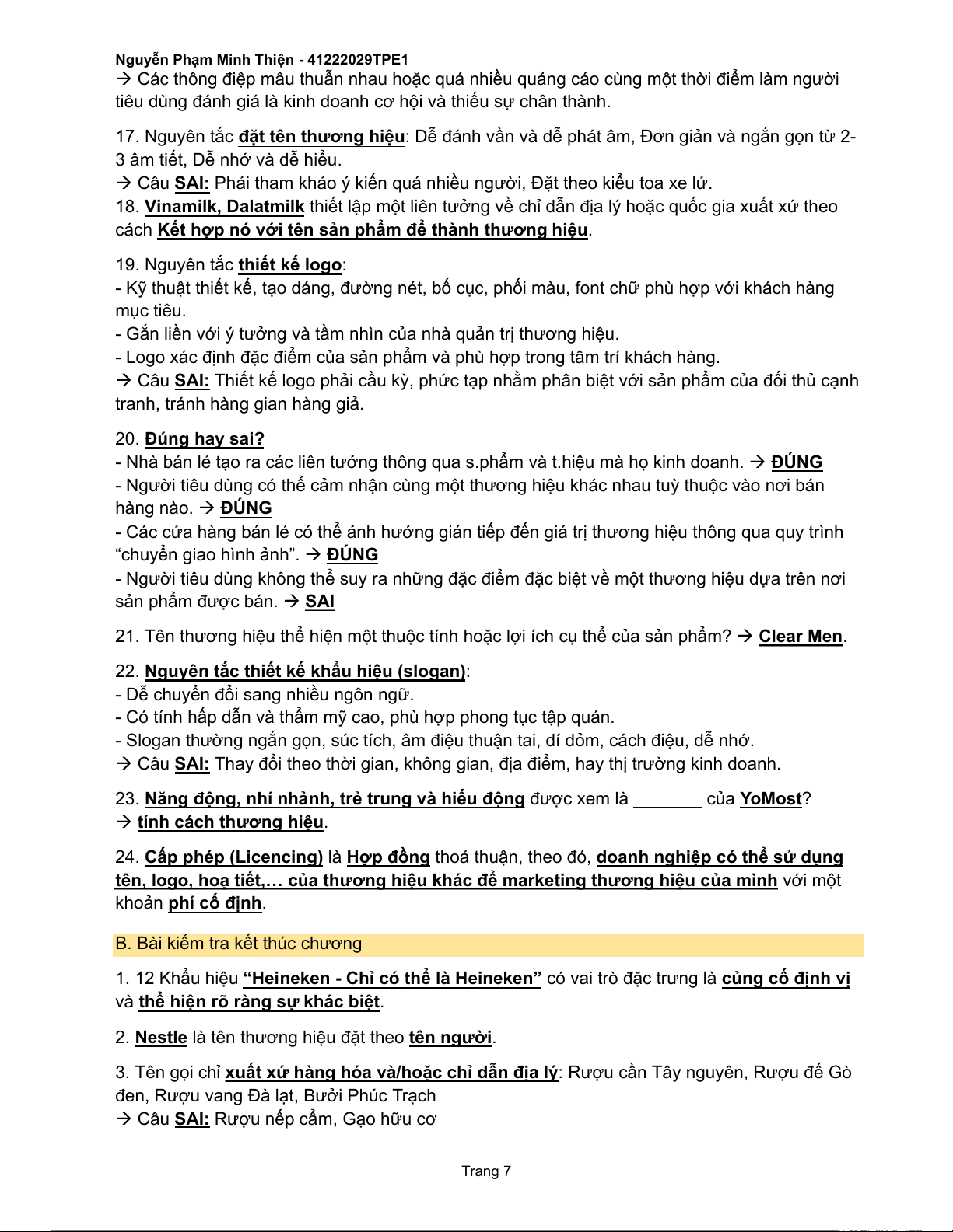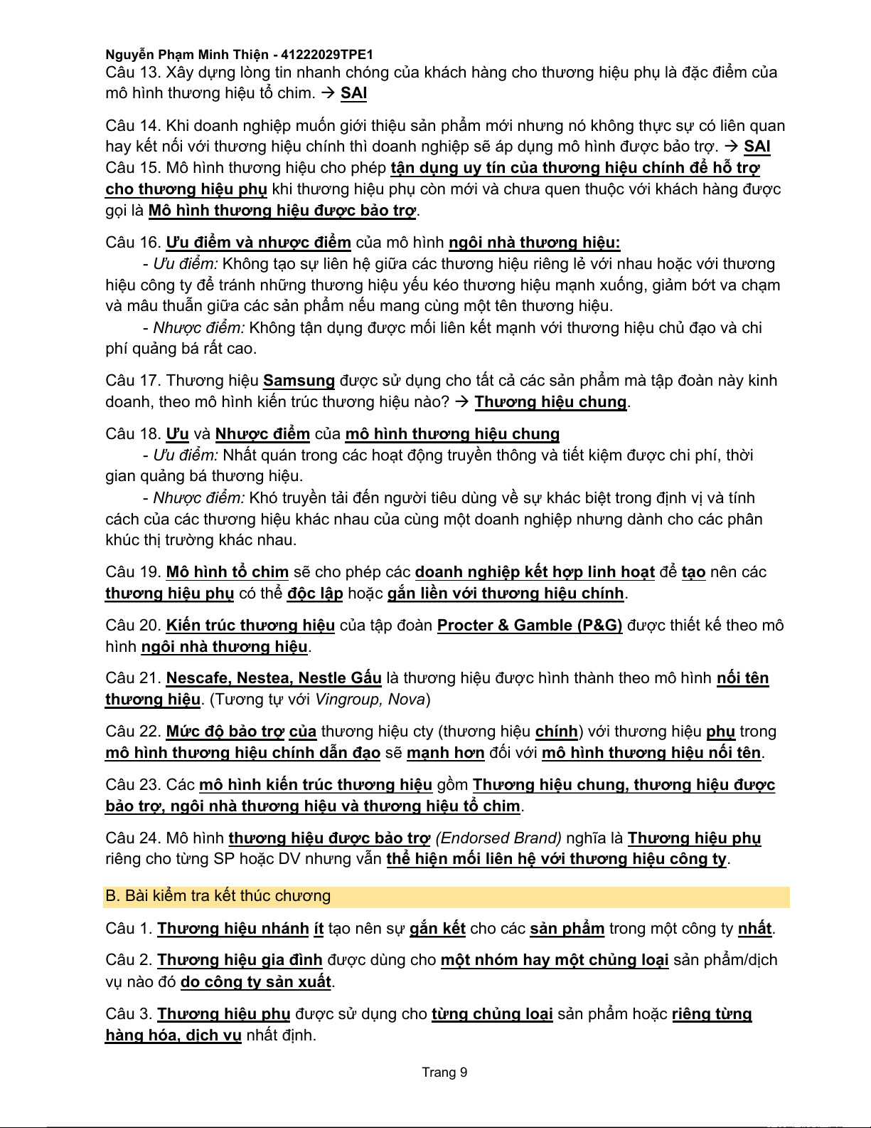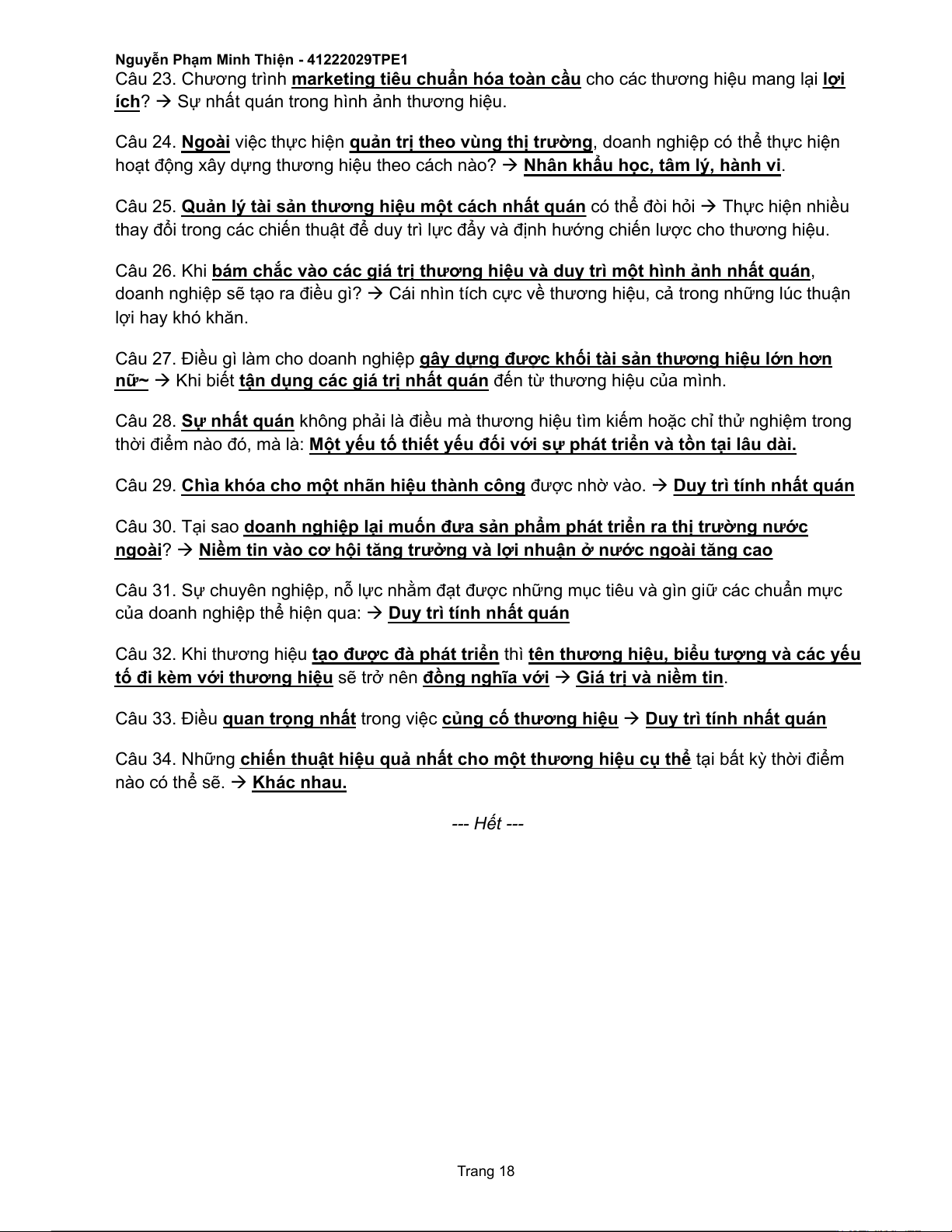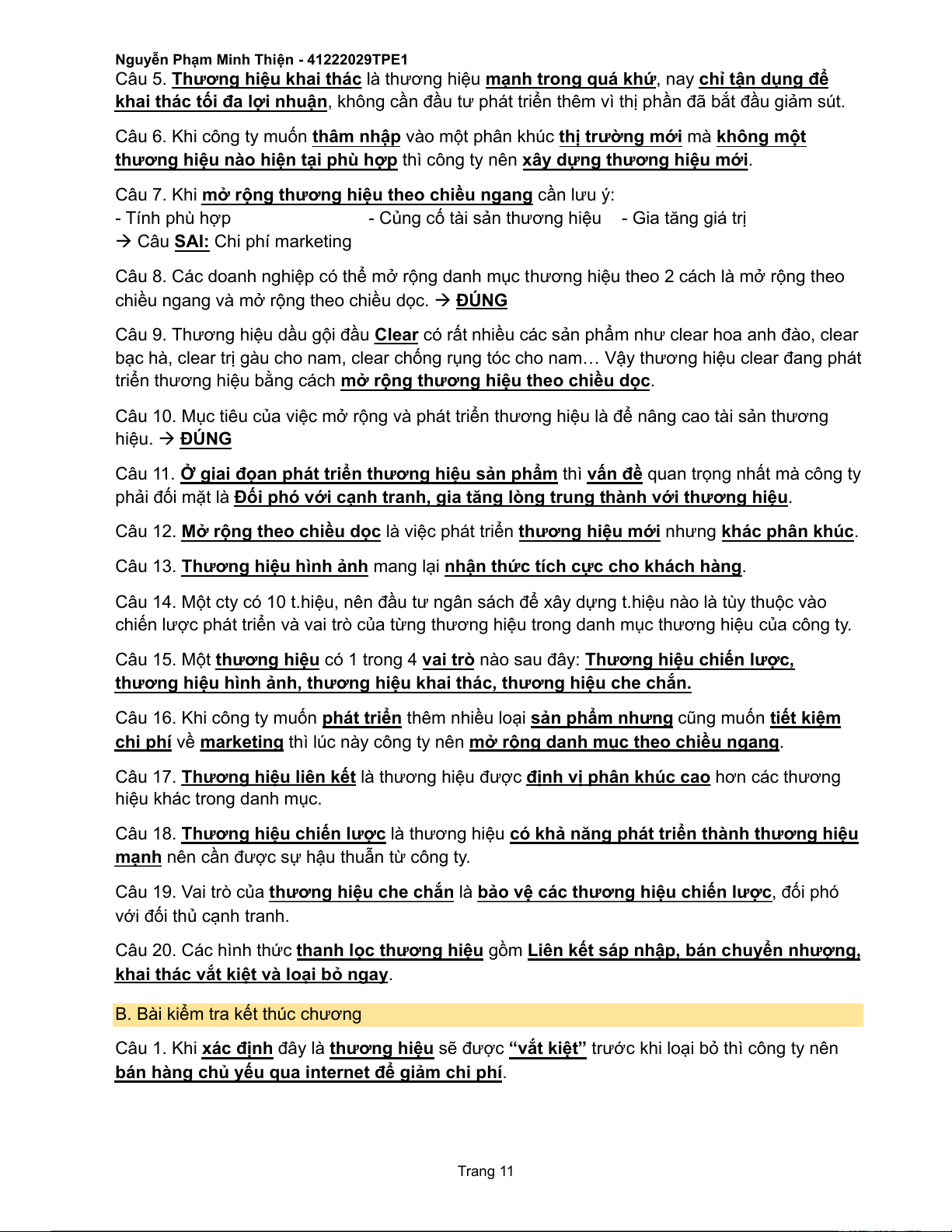 Câu 18. Nên loại bỏ thương hiệu khi nào. → Khi thương hiệu không còn khả năng sửa chữa