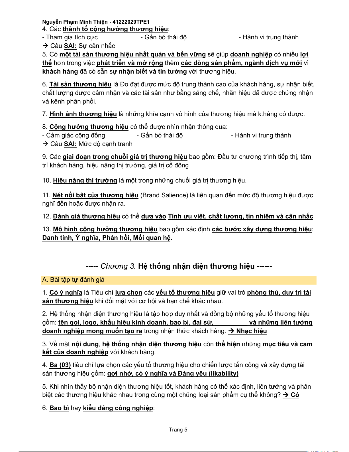 - Nhãn hiệu hiện diện trên văn bản pháp lý còn thương hiệu hiện diện trong tâm trí khách hàng. → Câu