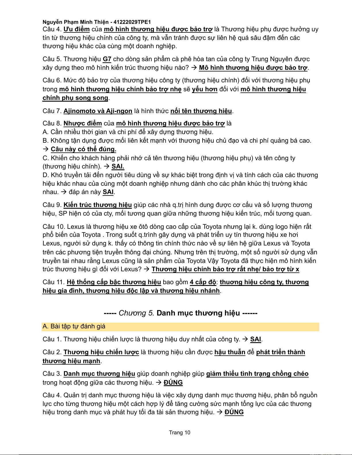 10. Phát biểu ĐÚN về thương hiệ G u: