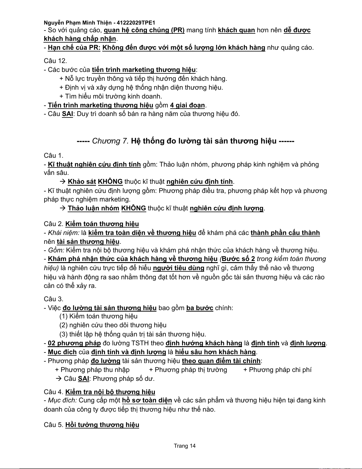 12. Theo quan điểm k.hàng của Aaker (1991), tài sản thương hiệu là một tập hợp tài sản vô