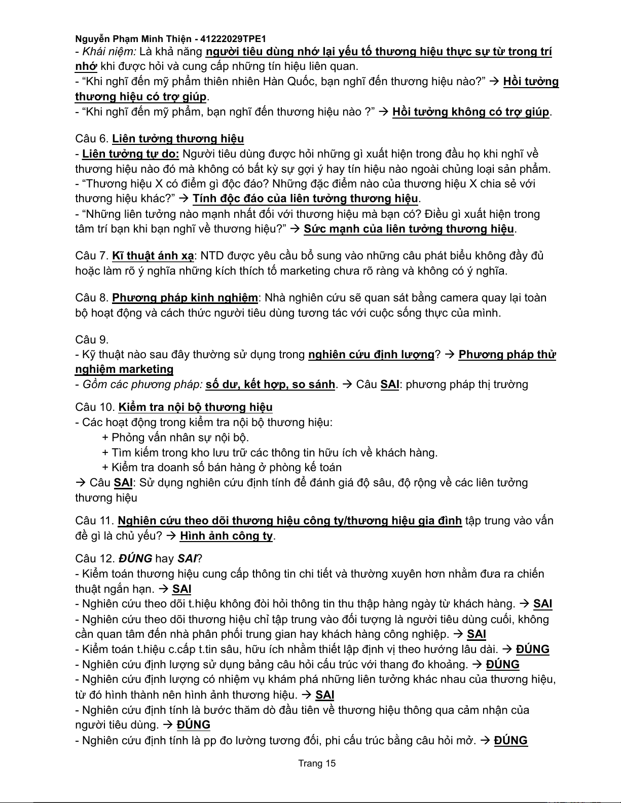kiến thức thương hiệu đối với phản ứng người tiêu dùng về hoạt động marketing thương hiệu. 15. C ứ
