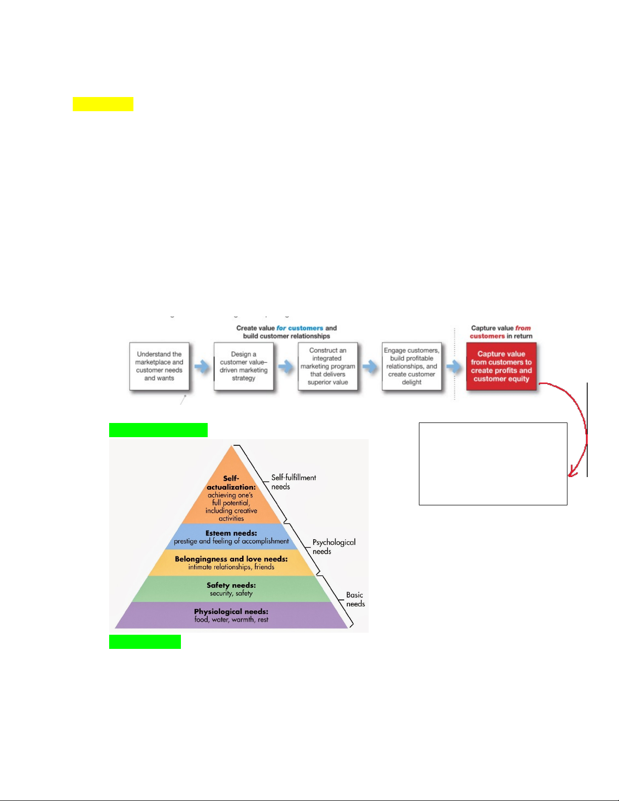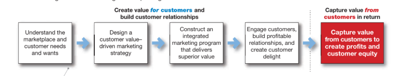 Marketing is a process by which companies value for customers and build strong customer relationships to capture value from customers in return. (memorize)